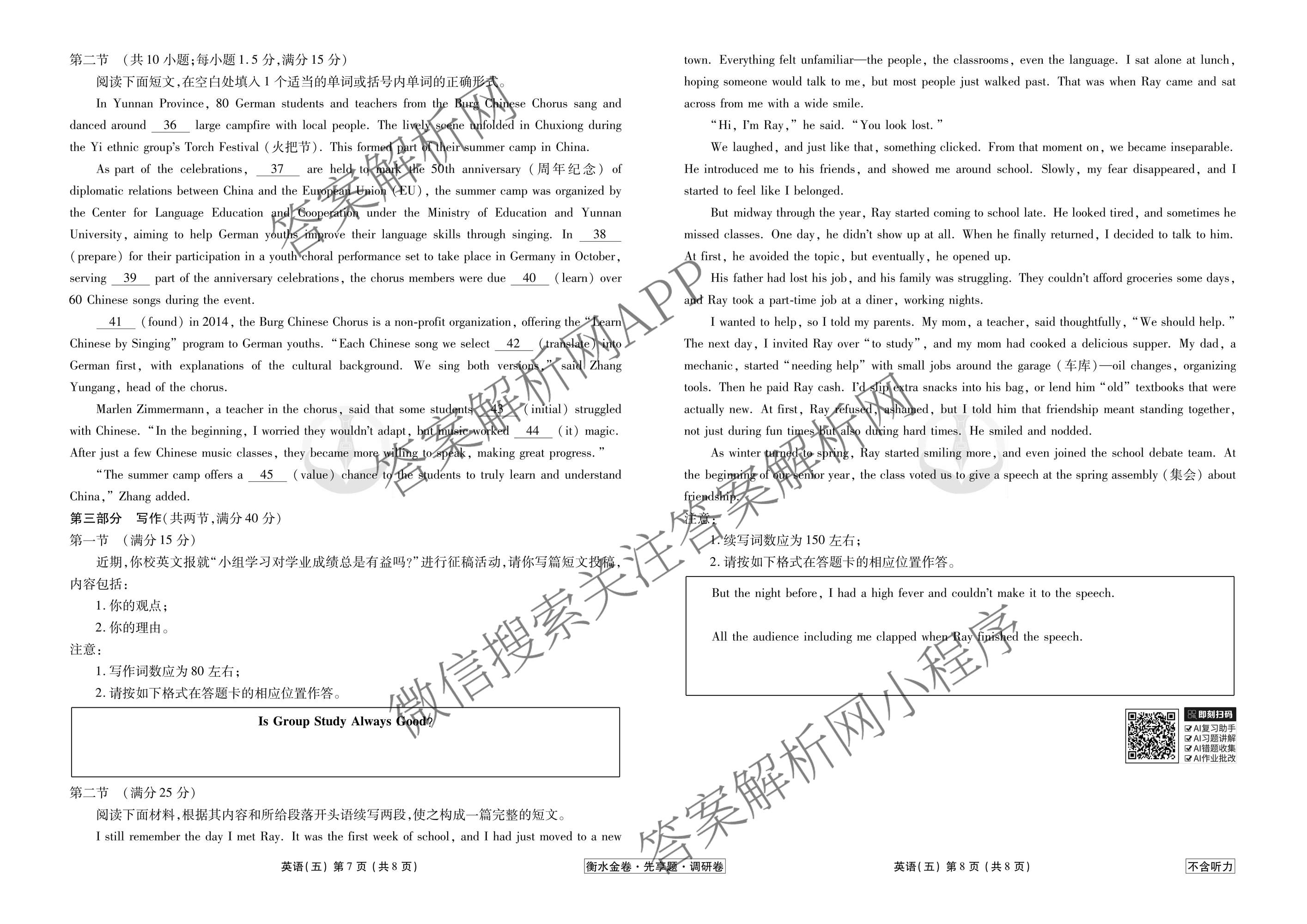 - [衡水金卷先享题]调研卷2026年普通高等学校招生全国统一考试模拟(五)5英语(不含听力)答案