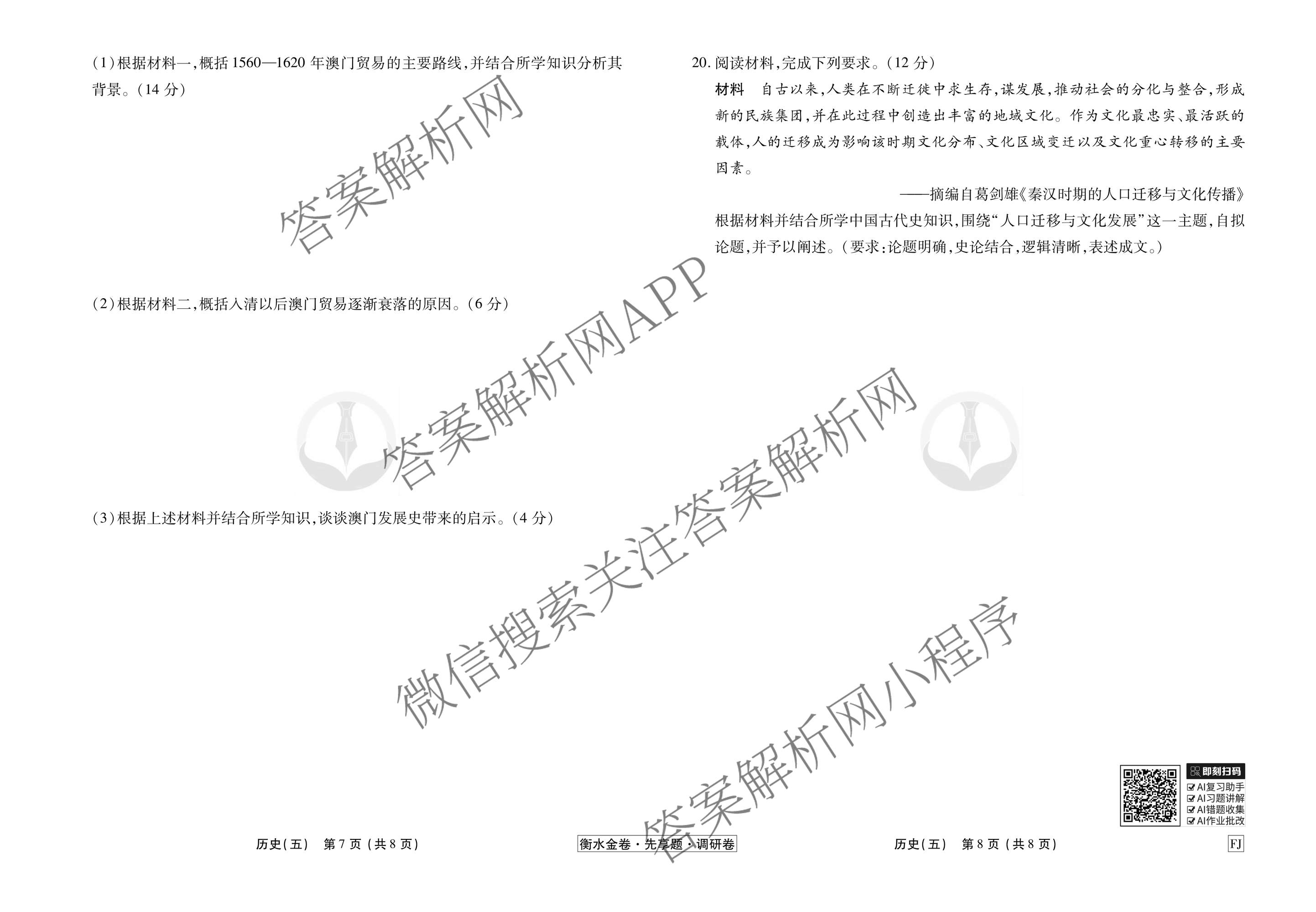 衡水金卷先享题·调研卷·2026年普通高中学业水平选择性考试模拟试题(五)5历史(FJ)试题,目前衡水金卷先享题答案网已经汇总了衡水金卷先享题·调研卷·2026年普通高中学业水平选择性考试模拟试题(五)5历史(FJ)试题的各科答案和试卷,获取更多衡水金卷先享题答案解析,请在关注本站。
