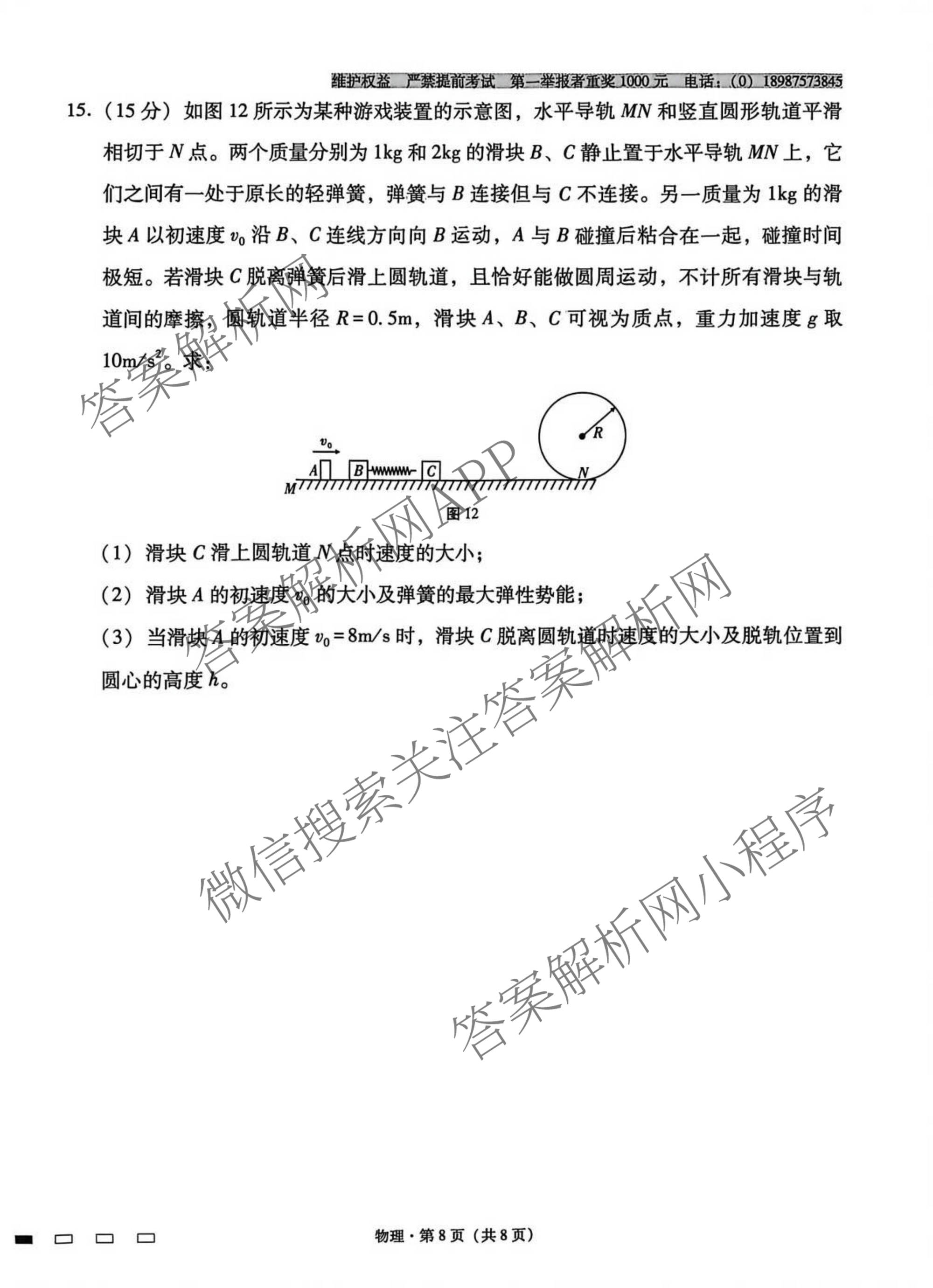 云南师大附中2026届高考适应性月考卷(六)(黑黑黑黑黑白白白)物理试题,目前衡水金卷先享题答案网已经汇总了云南师大附中2026届高考适应性月考卷(六)(黑黑黑黑黑白白白)物理试题的各科答案和试卷,获取更多地方模拟答案解析,请在关注本站。