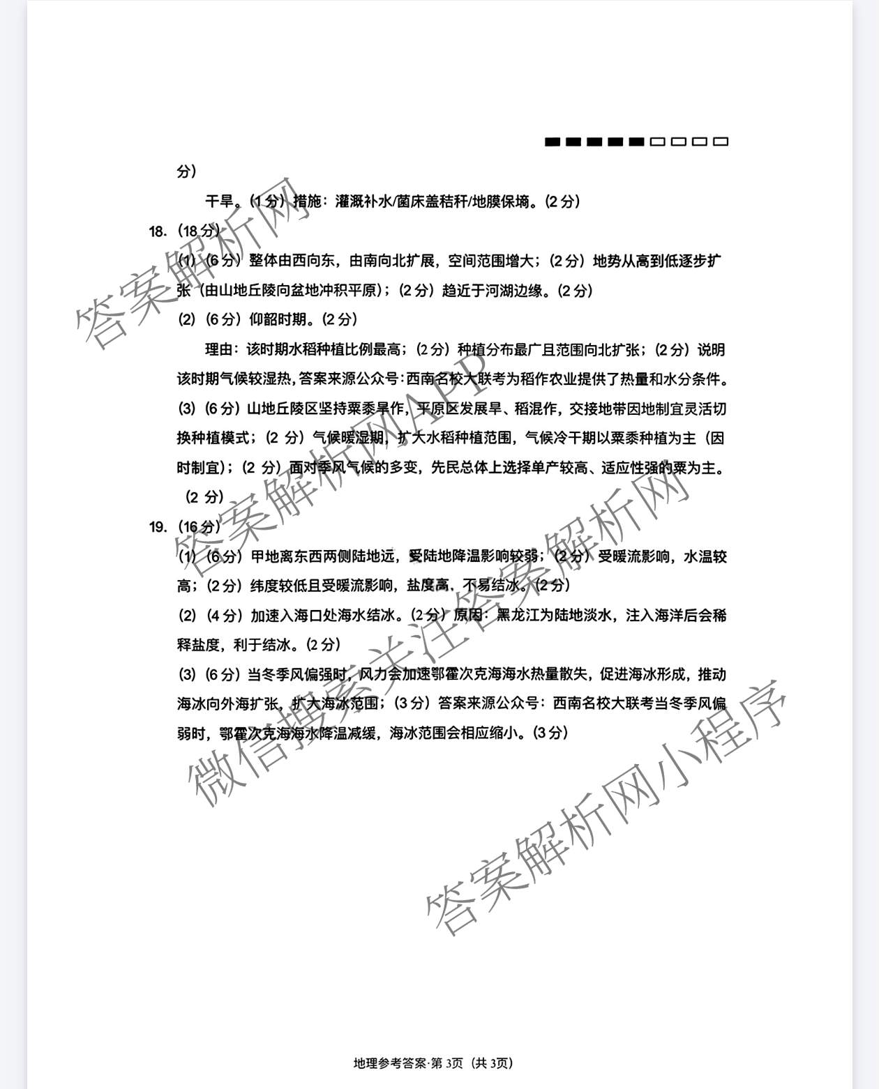 - 云南师大附中2026届高考适应性月考卷(六)(黑黑黑黑黑白白白)地理答案