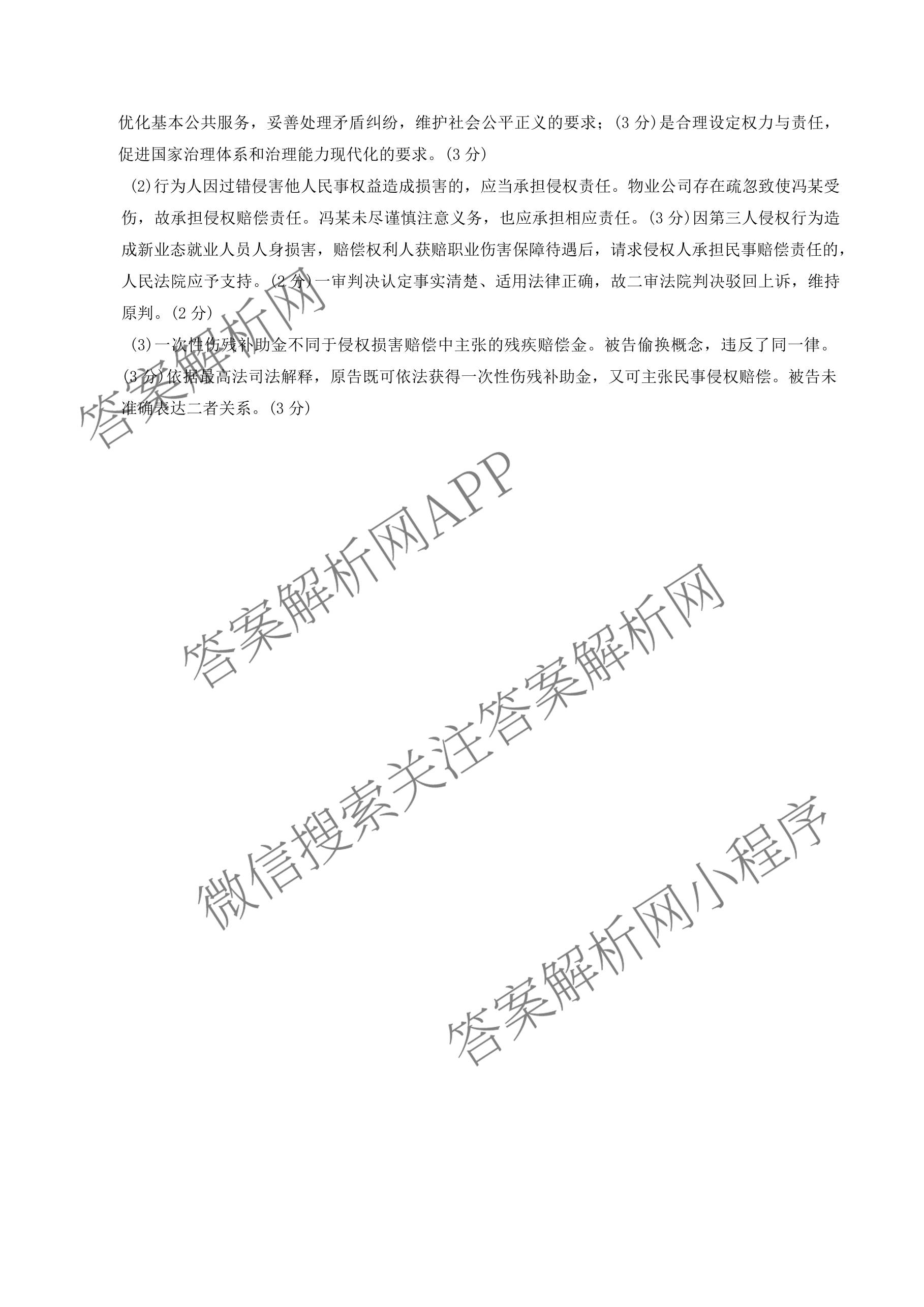 - (高三)[南通二模]江苏省南通市2026届第二次调研测试政治答案
