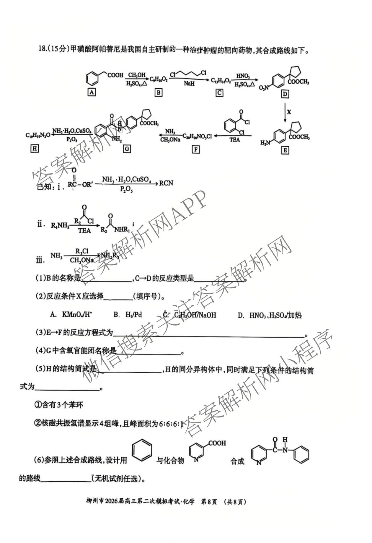 [柳州二模]柳州市2026届高三第二次模拟考试化学试题,目前衡水金卷先享题答案网已经汇总了[柳州二模]柳州市2026届高三第二次模拟考试化学试题的各科答案和试卷,获取更多地方模拟答案解析,请在关注本站。