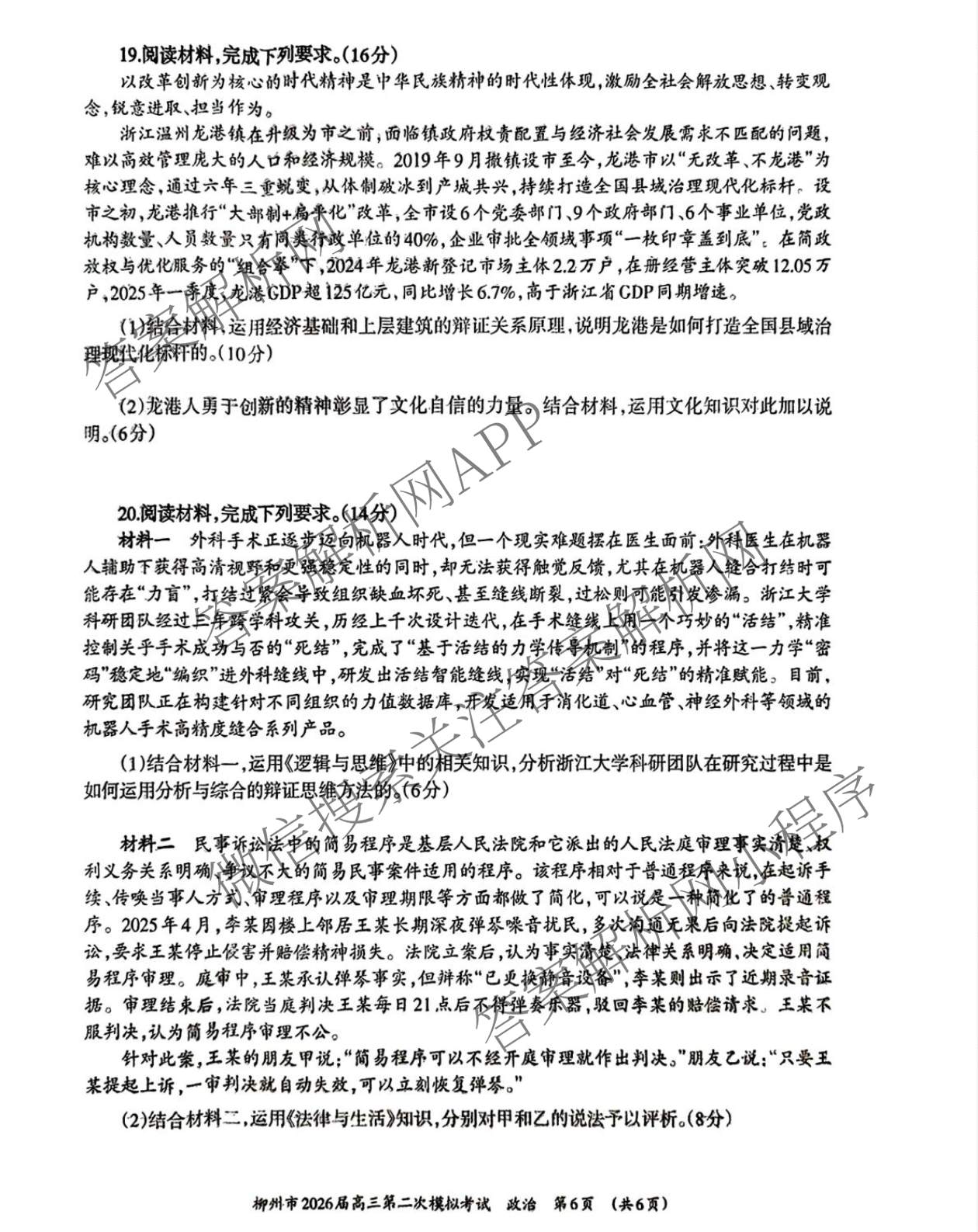 - [柳州二模]柳州市2026届[高三]第二次模拟考试政治试题