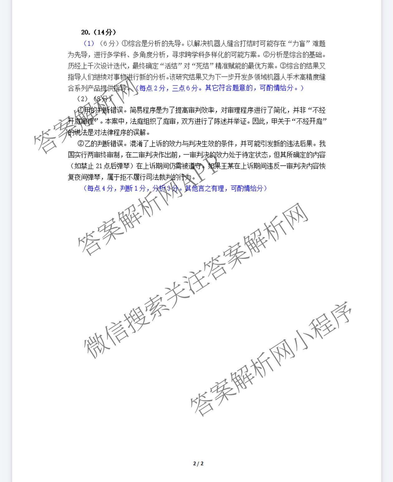 2026届(高三)[柳州二模]柳州市第二次模拟考试政治答案