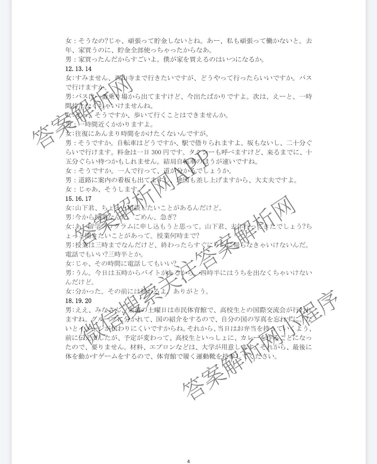- [高三][柳州二模]柳州市2026届第二次模拟考试日语答案