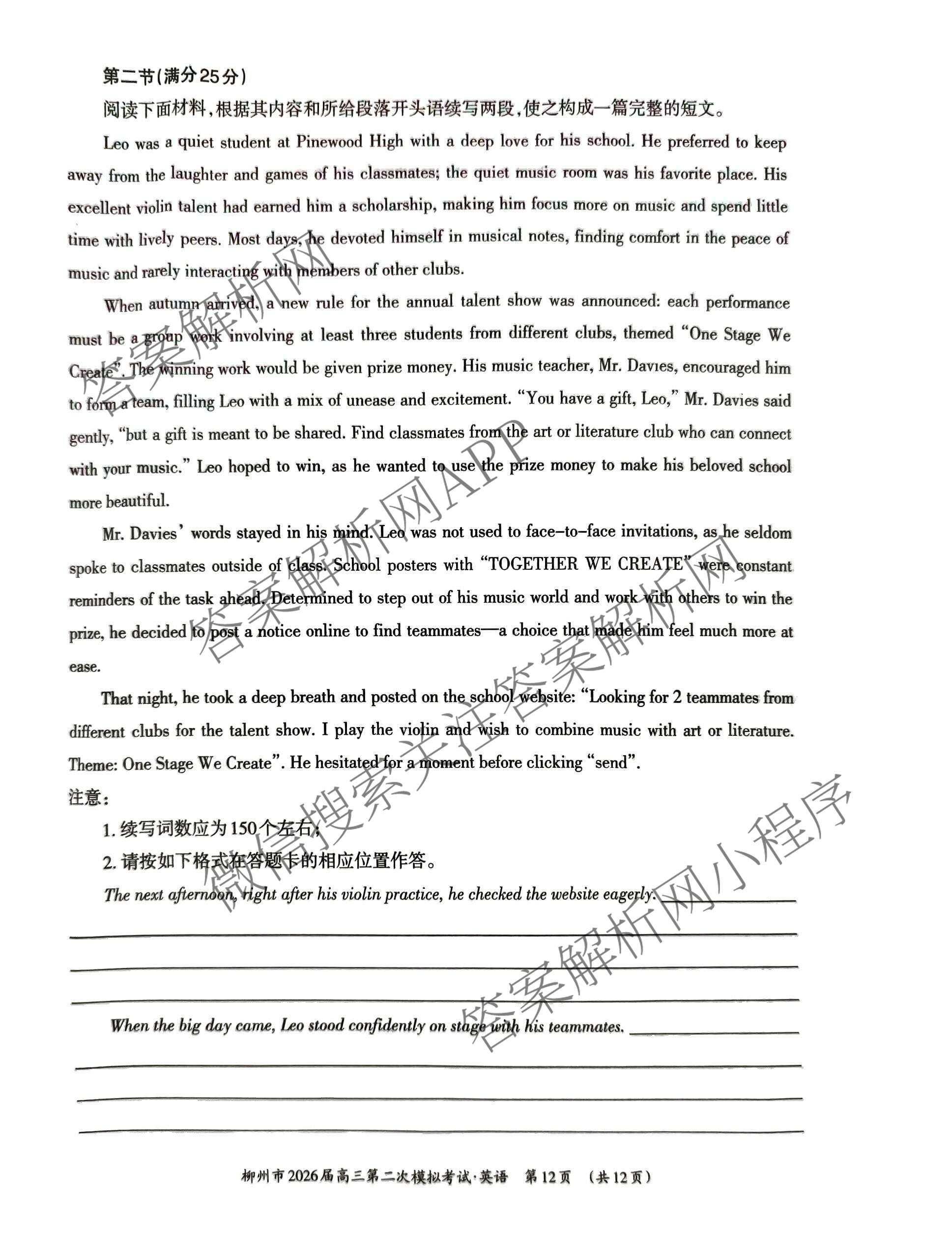 - (高三)[柳州二模]柳州市2026届第二次模拟考试英语试题