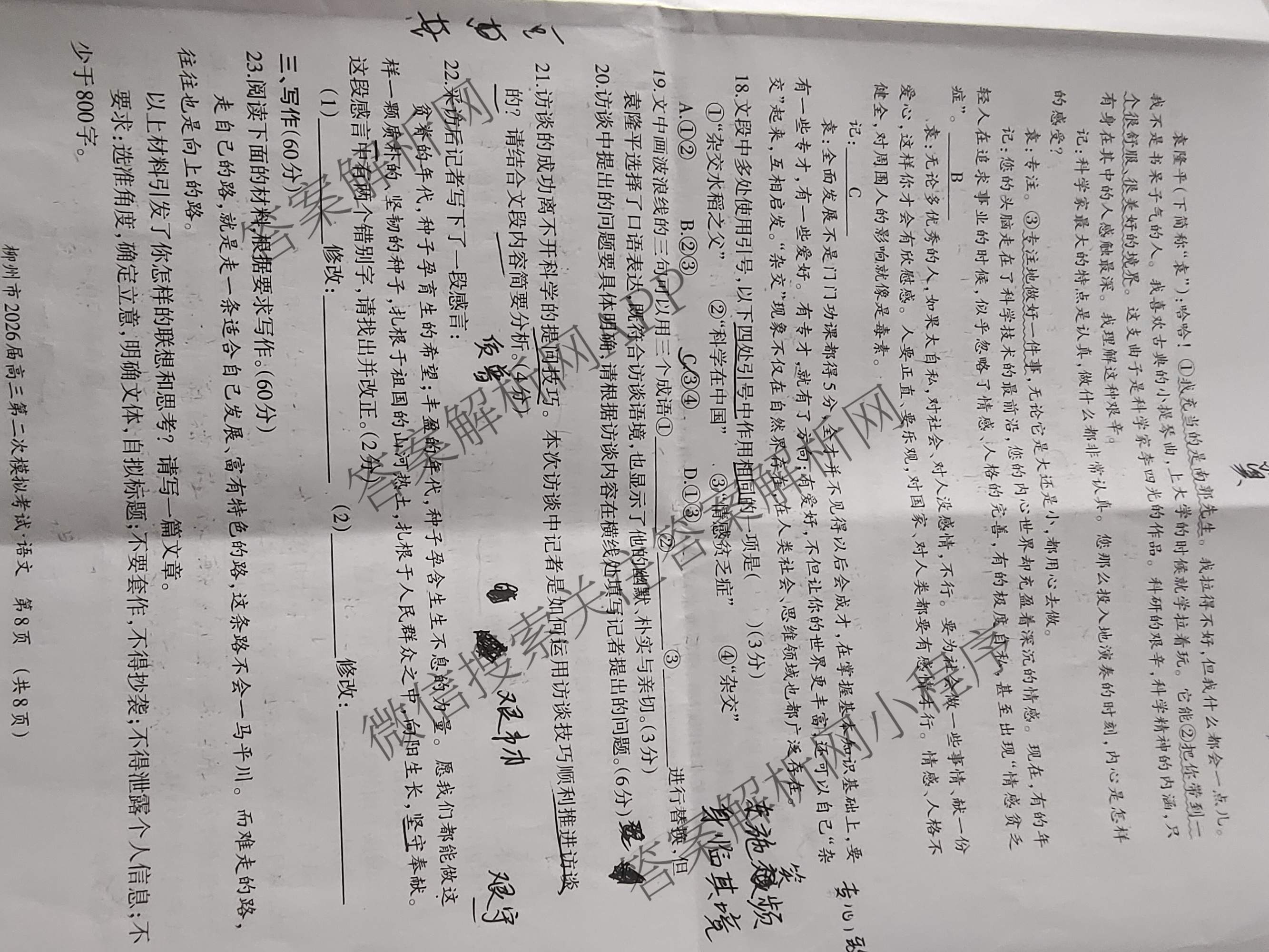 [柳州二模]柳州市2026届高三第二次模拟考试语文试题,目前衡水金卷先享题答案网已经汇总了[柳州二模]柳州市2026届高三第二次模拟考试语文试题的各科答案和试卷,获取更多地方模拟答案解析,请在关注本站。