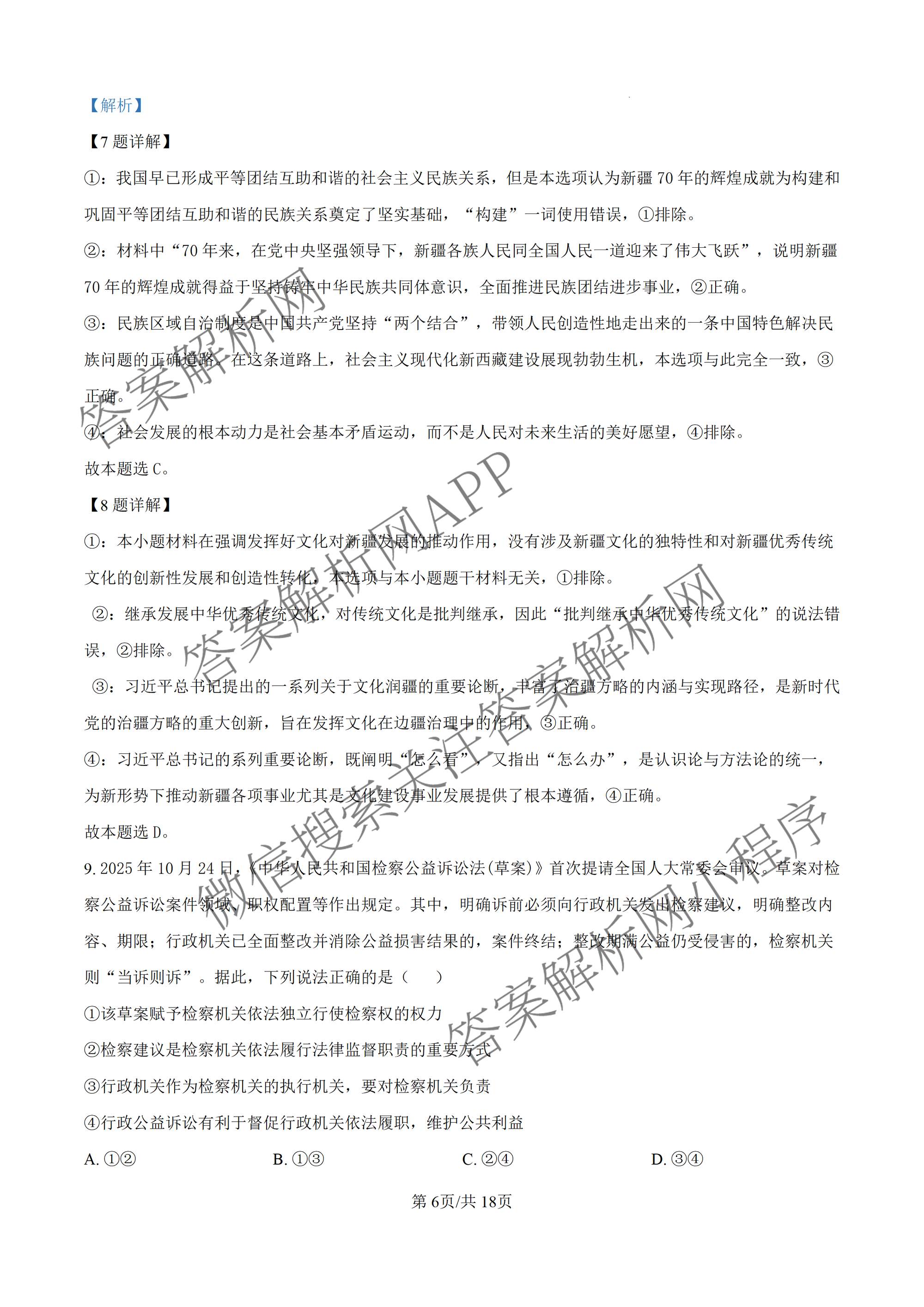 2026届高考备考信息巩固训练(三)(高三)政治答案