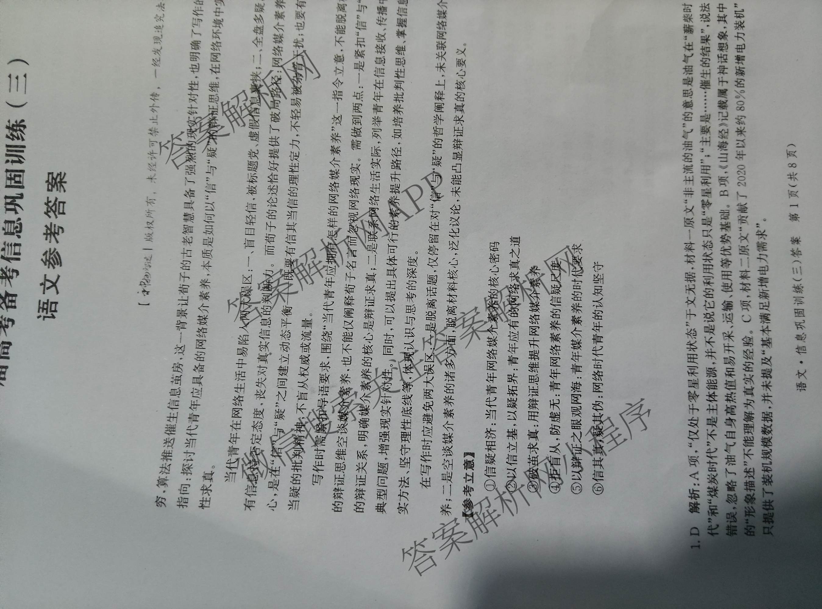 - 高三2026届高考备考信息巩固训练(三)语文答案