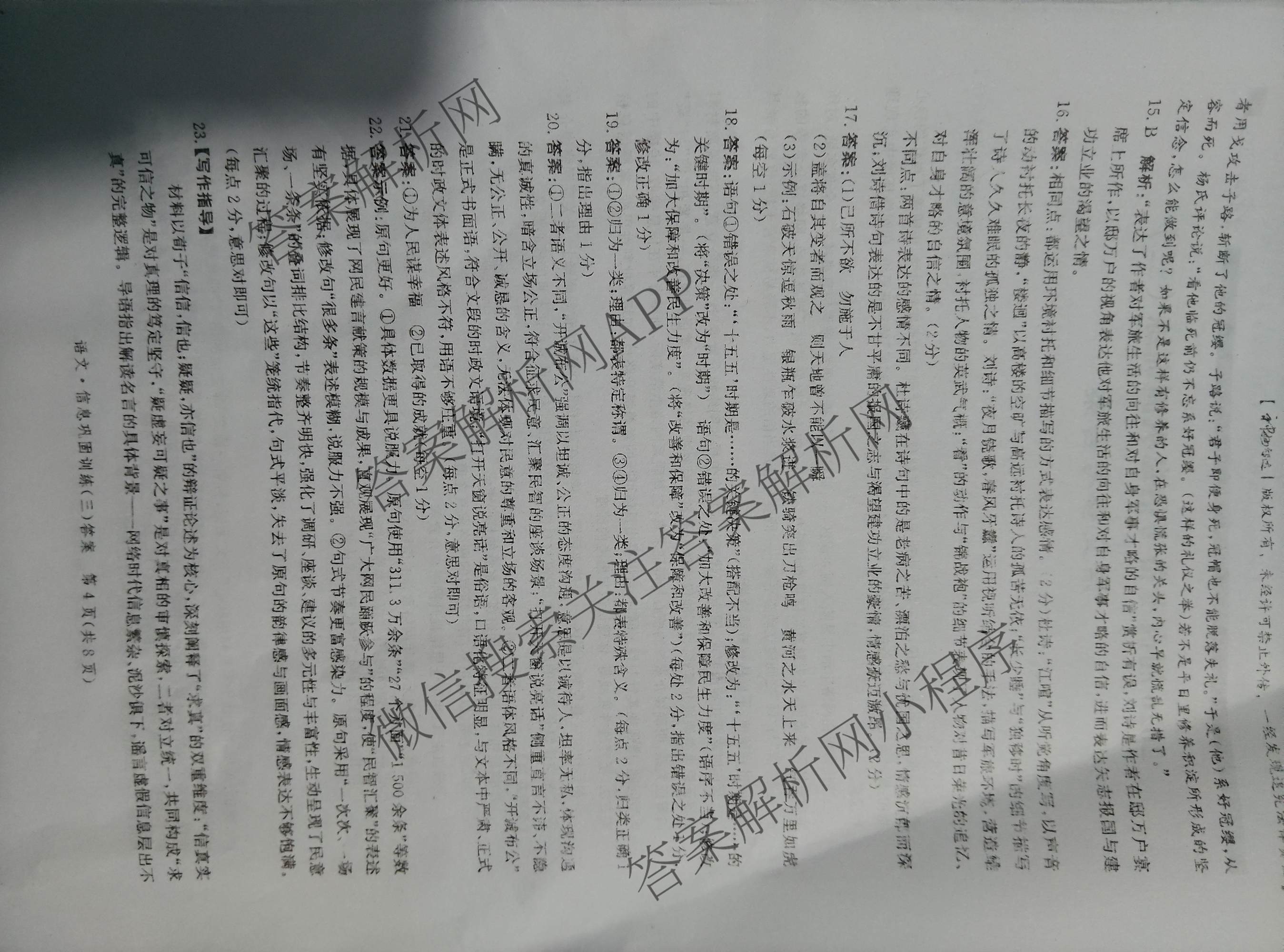 - 高三2026届高考备考信息巩固训练(三)语文答案