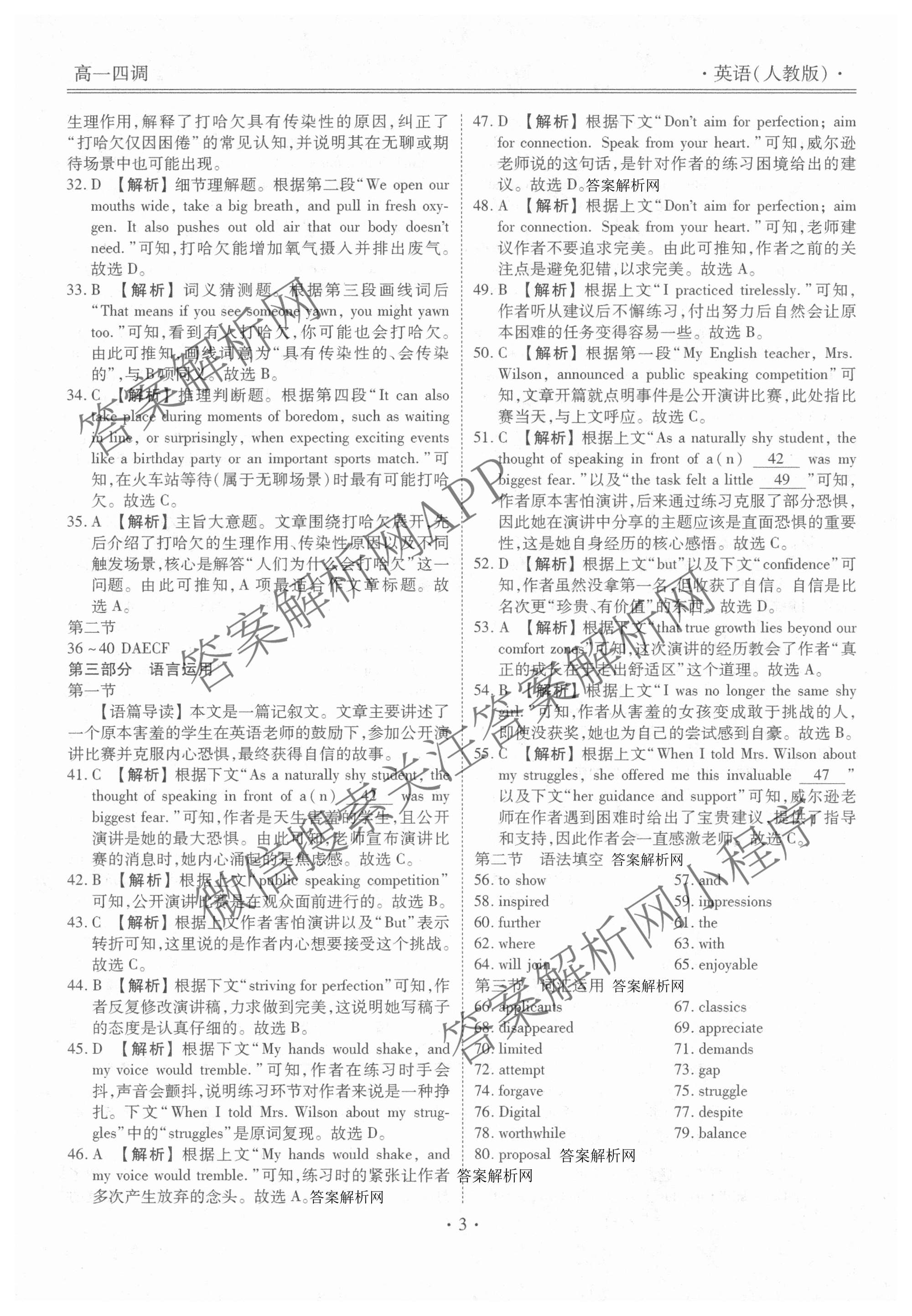 [高一][衡水金卷先享题]·月考卷·2025~2026学年度上学期年级四调考试英语(人教版)答案