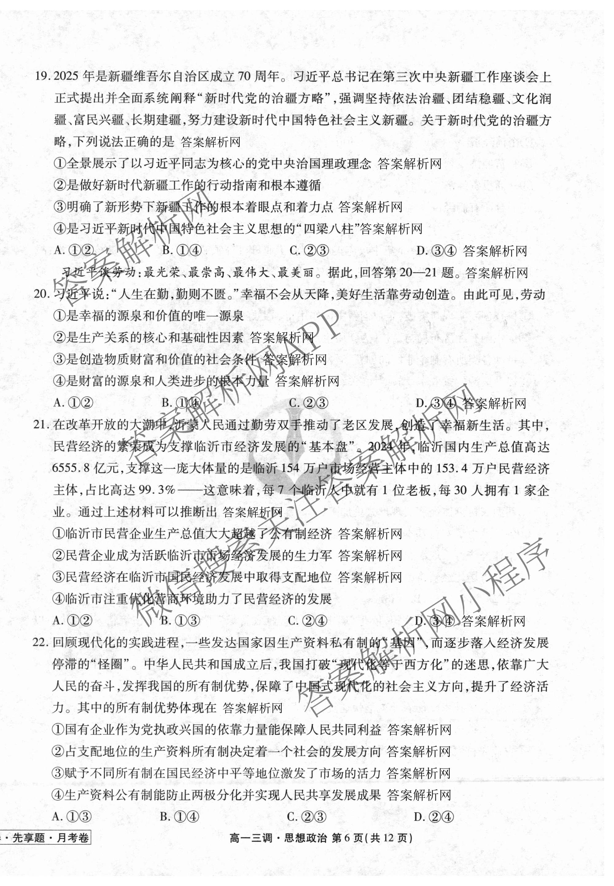 衡水金卷先享题·月考卷·2025-2026学年度上学期高一年级三调考试政治试题,目前衡水金卷先享题答案网已经汇总了衡水金卷先享题·月考卷·2025-2026学年度上学期高一年级三调考试政治试题的各科答案和试卷,获取更多衡水金卷先享题答案解析,请在关注本站。