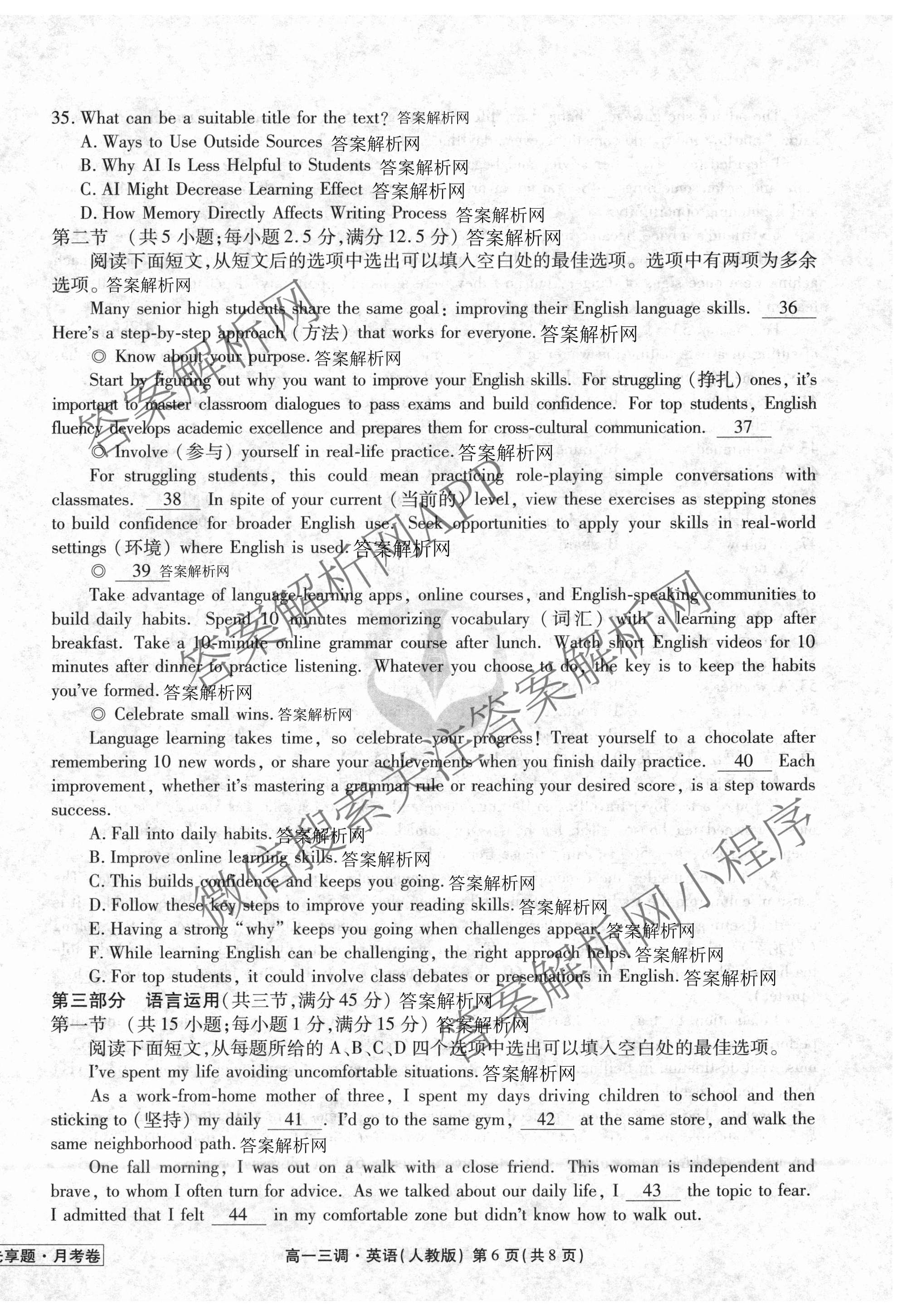 - [衡水金卷先享题]月考卷2025~2026学年度上学期[高一]年级三调考试英语(人教版)答案