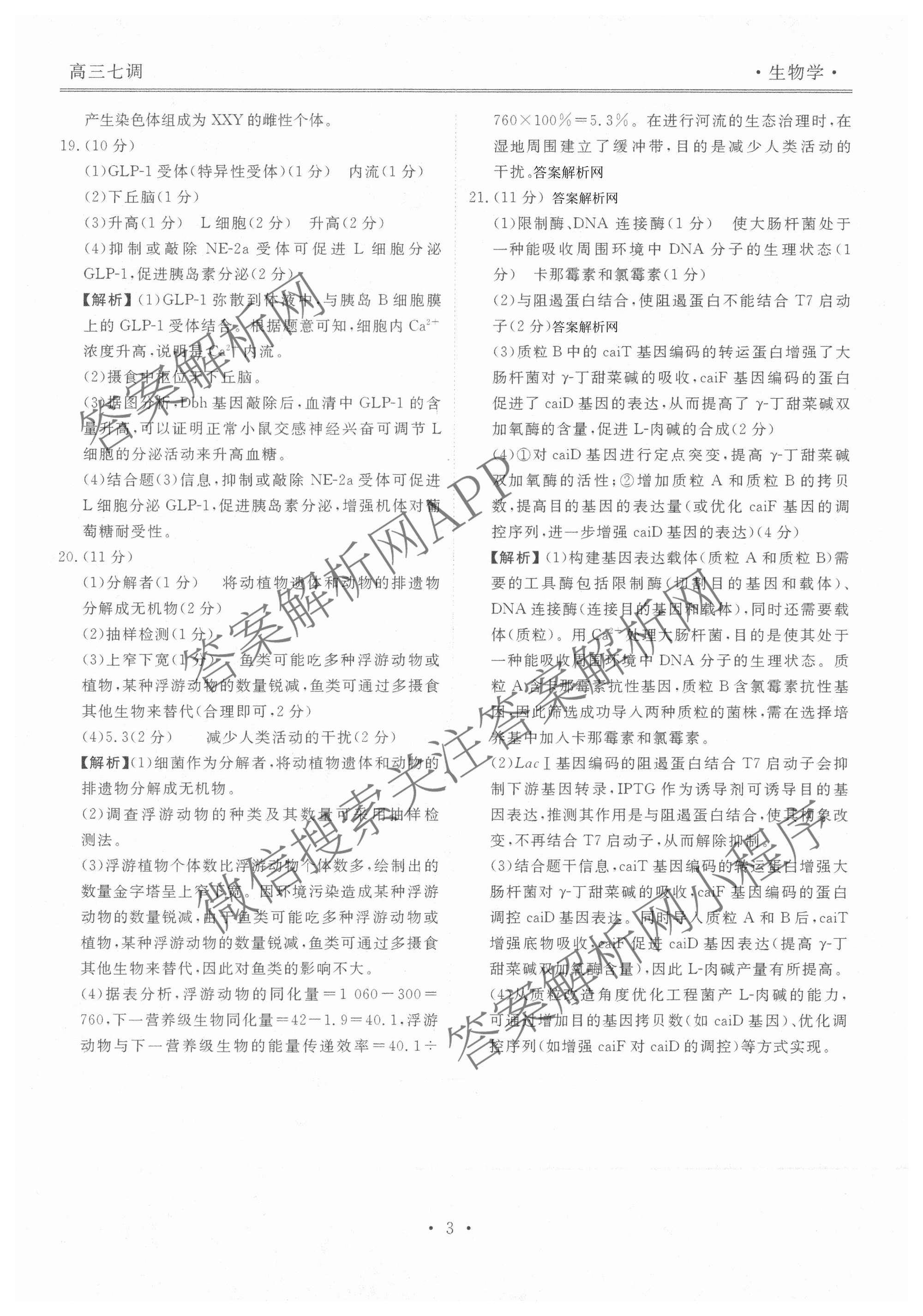 2025-2026[衡水金卷先享题]月考卷学年度上学期(高三)年级七调考试生物答案