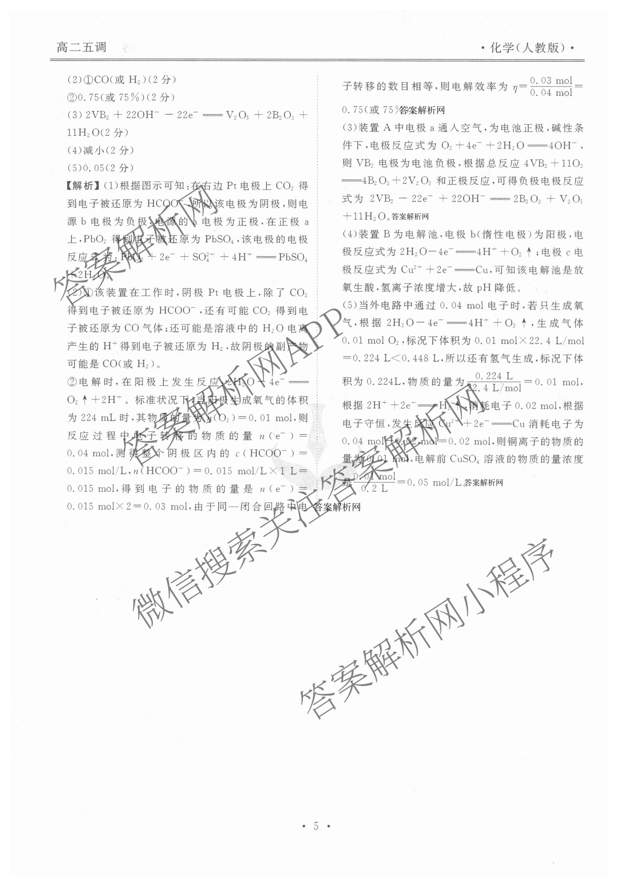 - [衡水金卷先享题]月考卷2025-2026学年度上学期[高二]年级五调考试化学(人教版)答案