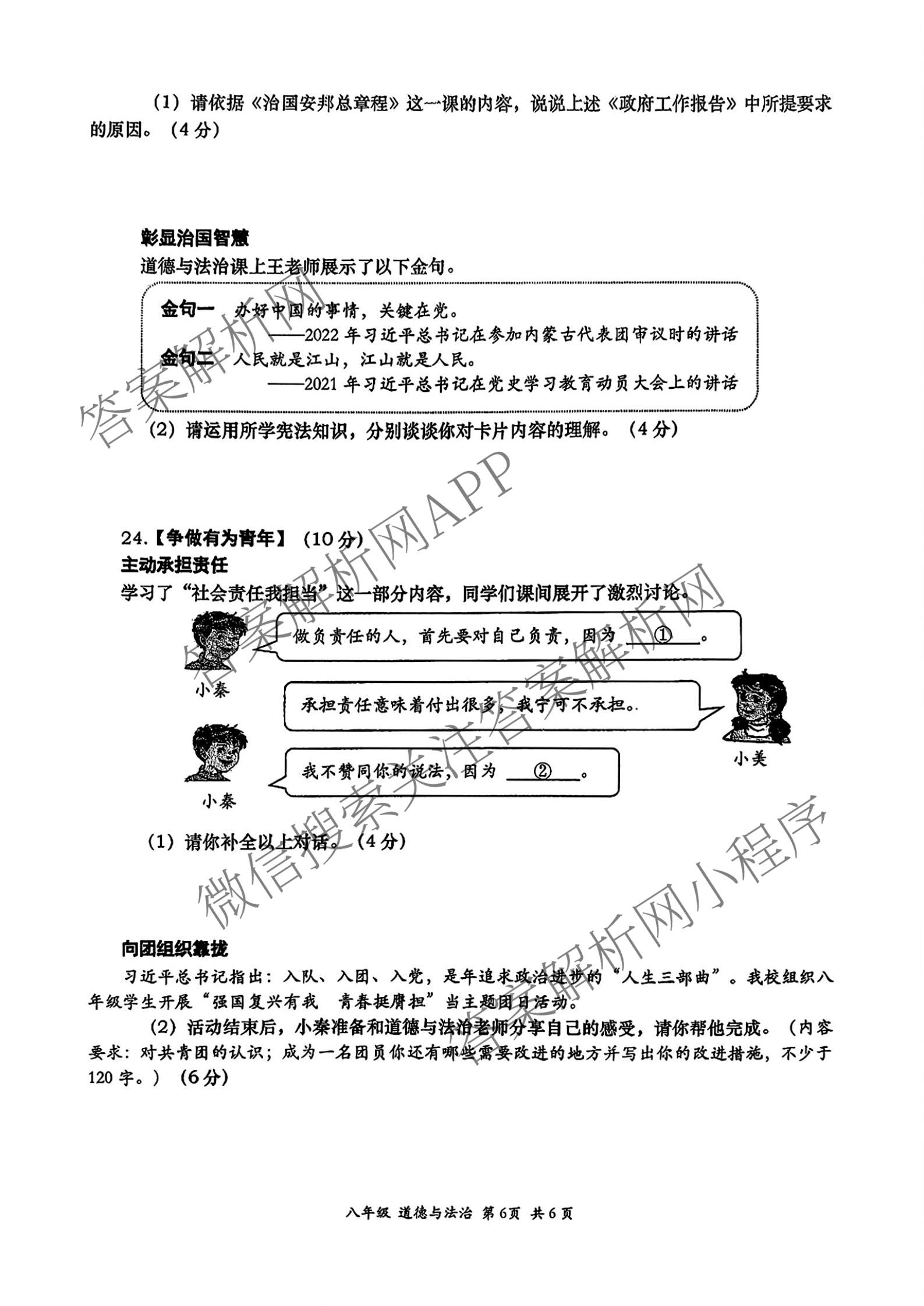 陕西省2025~2026学年度第一学期期末考试试题八年级道德与法治答案,目前衡水金卷先享题答案网已经汇总了陕西省2025~2026学年度第一学期期末考试试题八年级道德与法治答案的各科答案和试卷,获取更多地方模拟答案解析,请在关注本站。