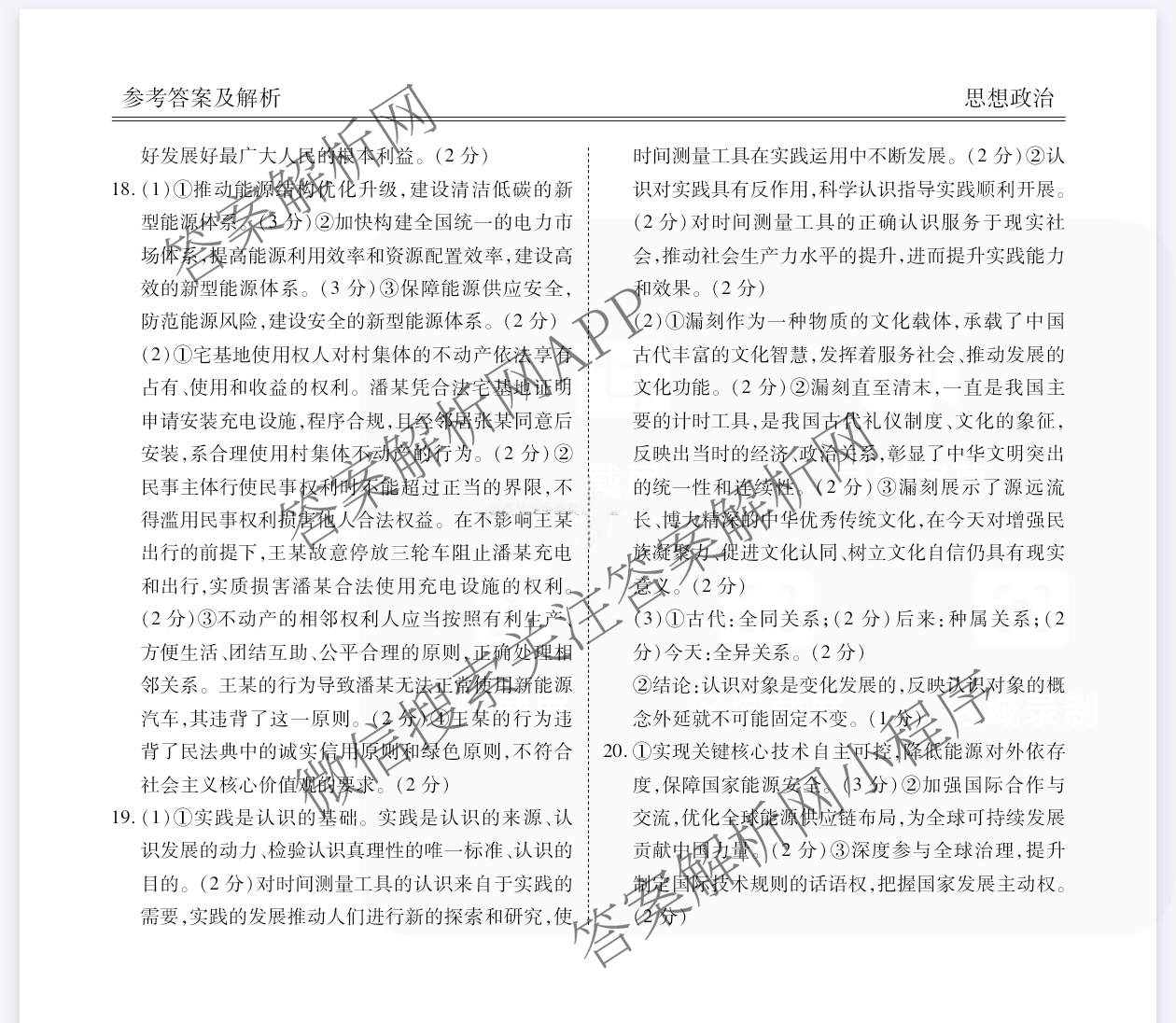 - (高三)(衡水金卷先享题)·2026届年级1月份适应性测试政治答案