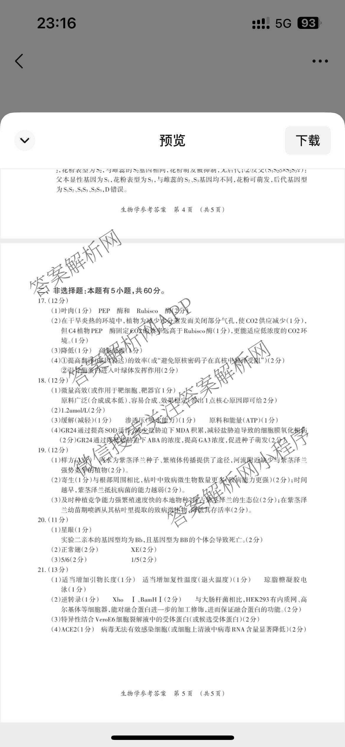 广西2025-2026学年上学期桂林市高三年级期末质量检测(2026年1月)生物答案,目前衡水金卷先享题答案网已经汇总了广西2025-2026学年上学期桂林市高三年级期末质量检测(2026年1月)生物答案的各科答案和试卷,获取更多地方模拟答案解析,请在关注本站。