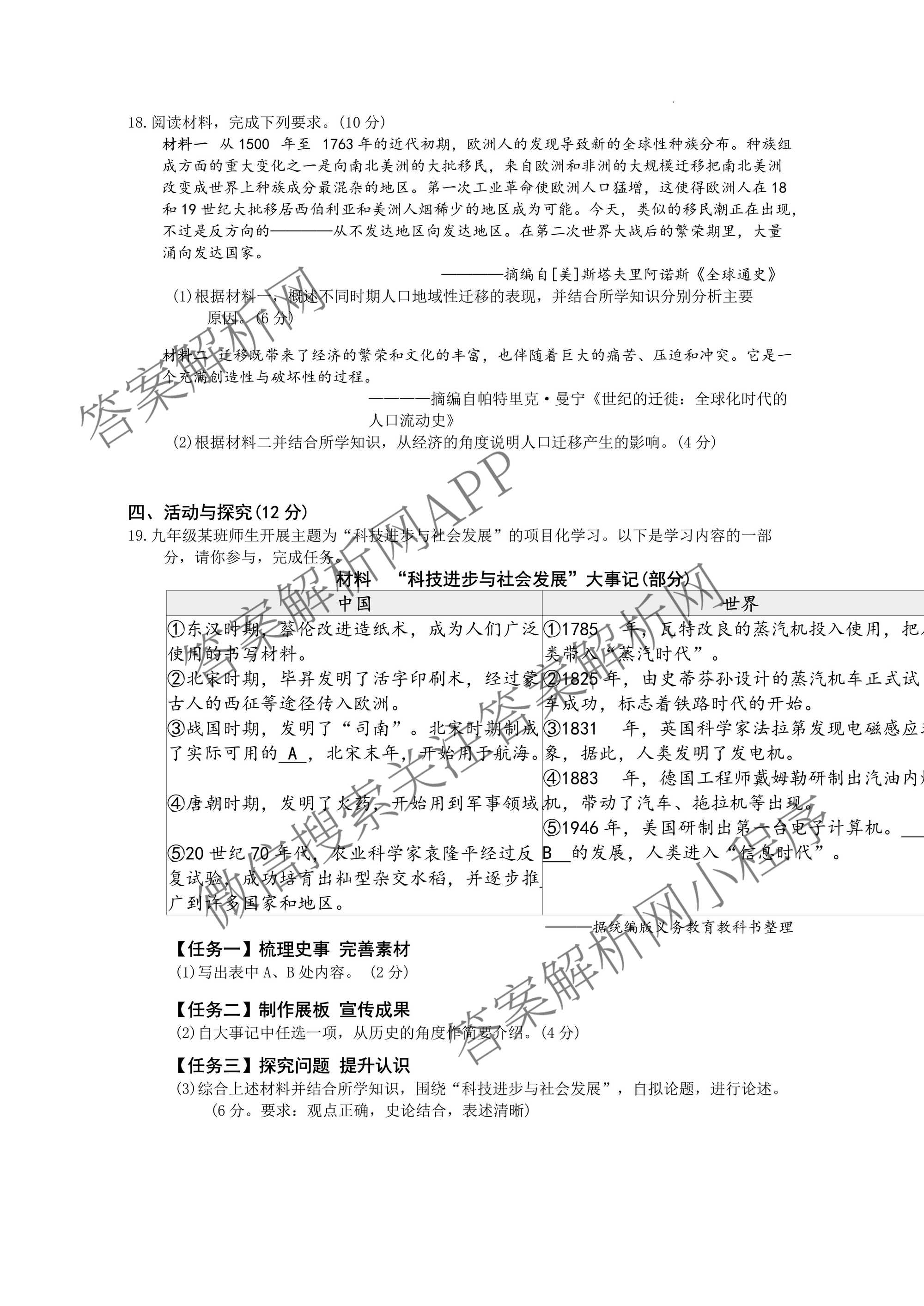 - 安徽省"C20"教育联盟2026年[九年级]第一次学业水平检测历史答案