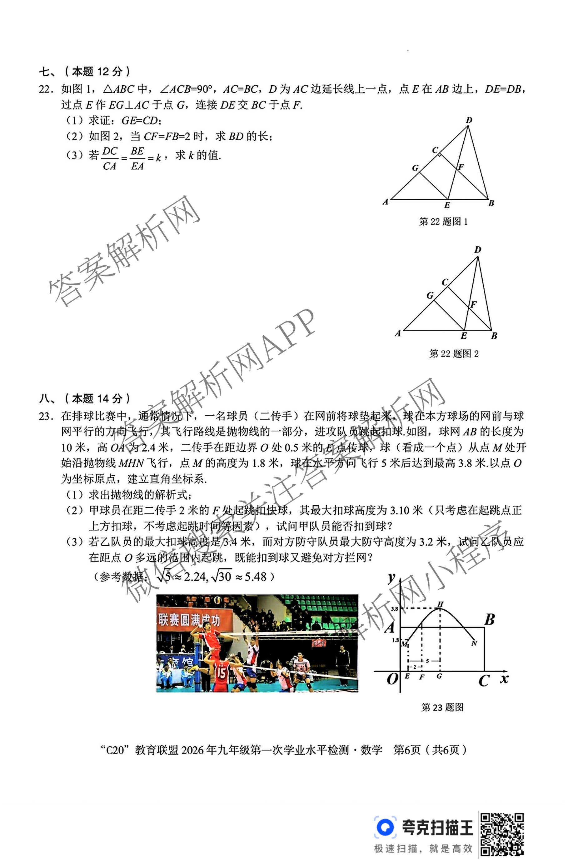 安徽省"C20"教育联盟2026年九年级第一次学业水平检测数学试题,目前衡水金卷先享题答案网已经汇总了安徽省"C20"教育联盟2026年九年级第一次学业水平检测数学试题的各科答案和试卷,获取更多地方模拟答案解析,请在关注本站。