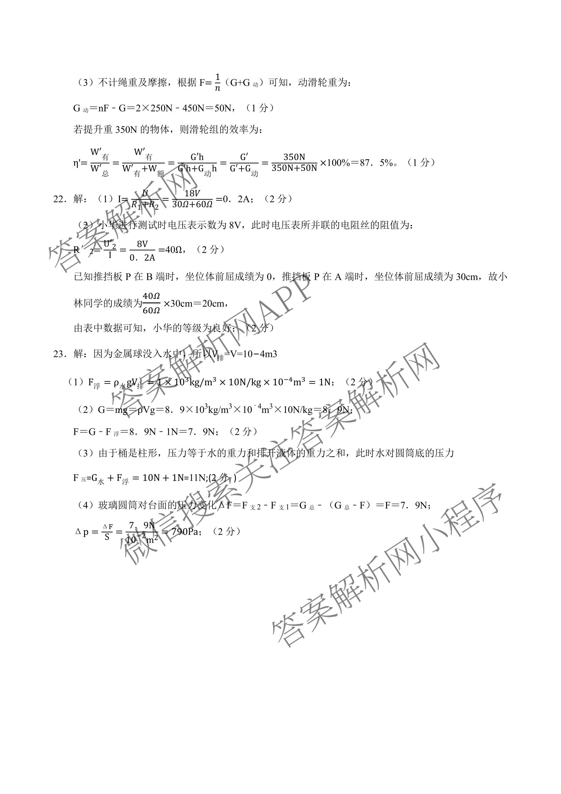 - 安徽省"C20"教育联盟2026年(九年级)第一次学业水平检测物理答案