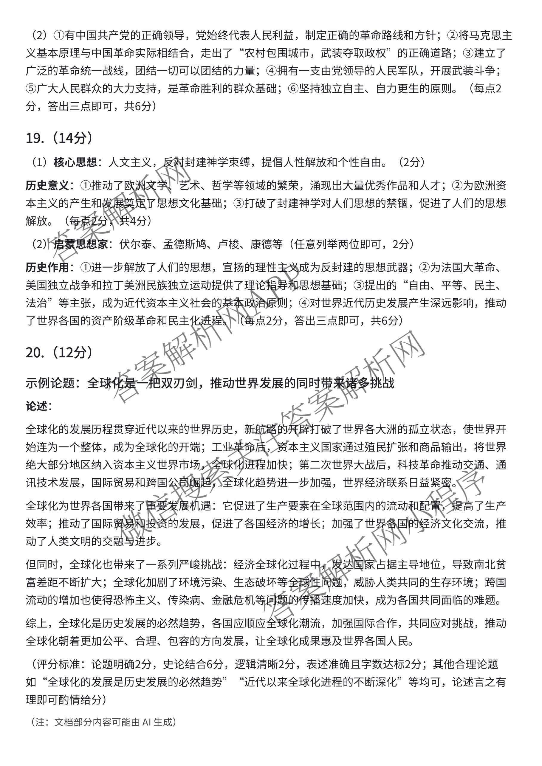 - 湖南省2026届衡阳市八中[高三]年级高考适应性考试(一)历史答案