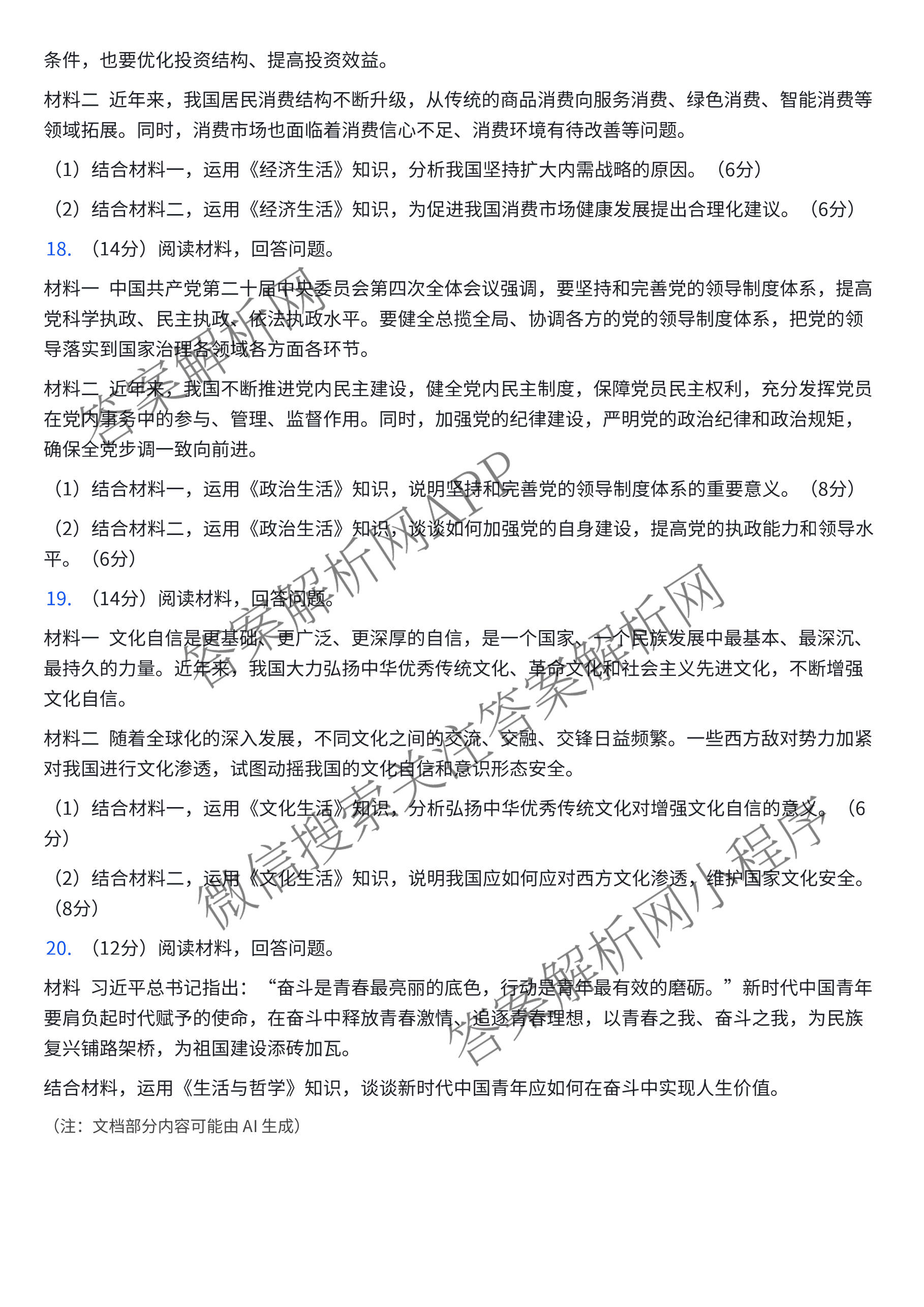 - 高三湖南省2026届衡阳市八中年级高考适应性考试(一)政治答案