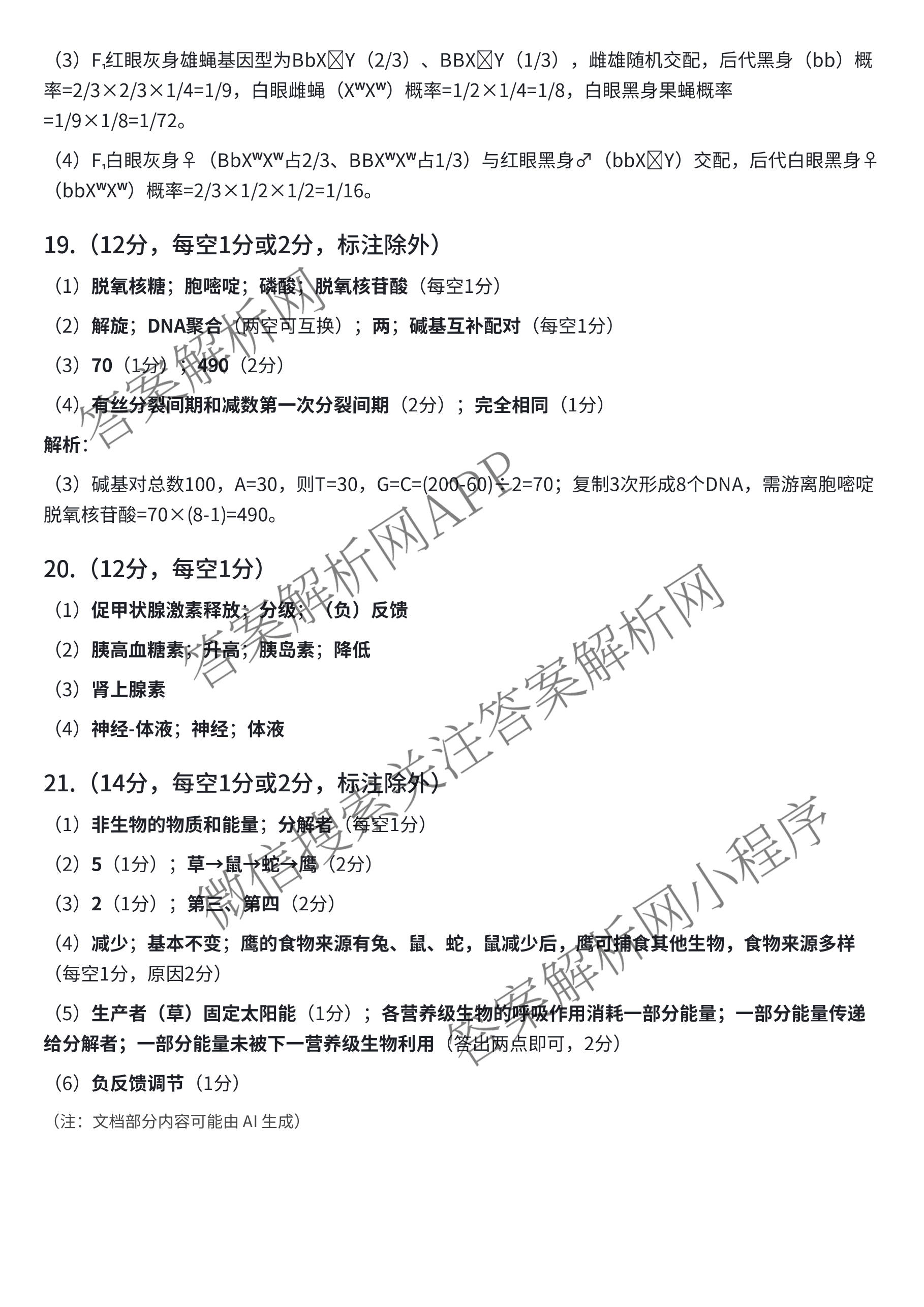 湖南省2026届衡阳市八中高三年级高考适应性考试(一)生物答案,目前衡水金卷先享题答案网已经汇总了湖南省2026届衡阳市八中高三年级高考适应性考试(一)生物答案的各科答案和试卷,获取更多地方模拟答案解析,请在关注本站。