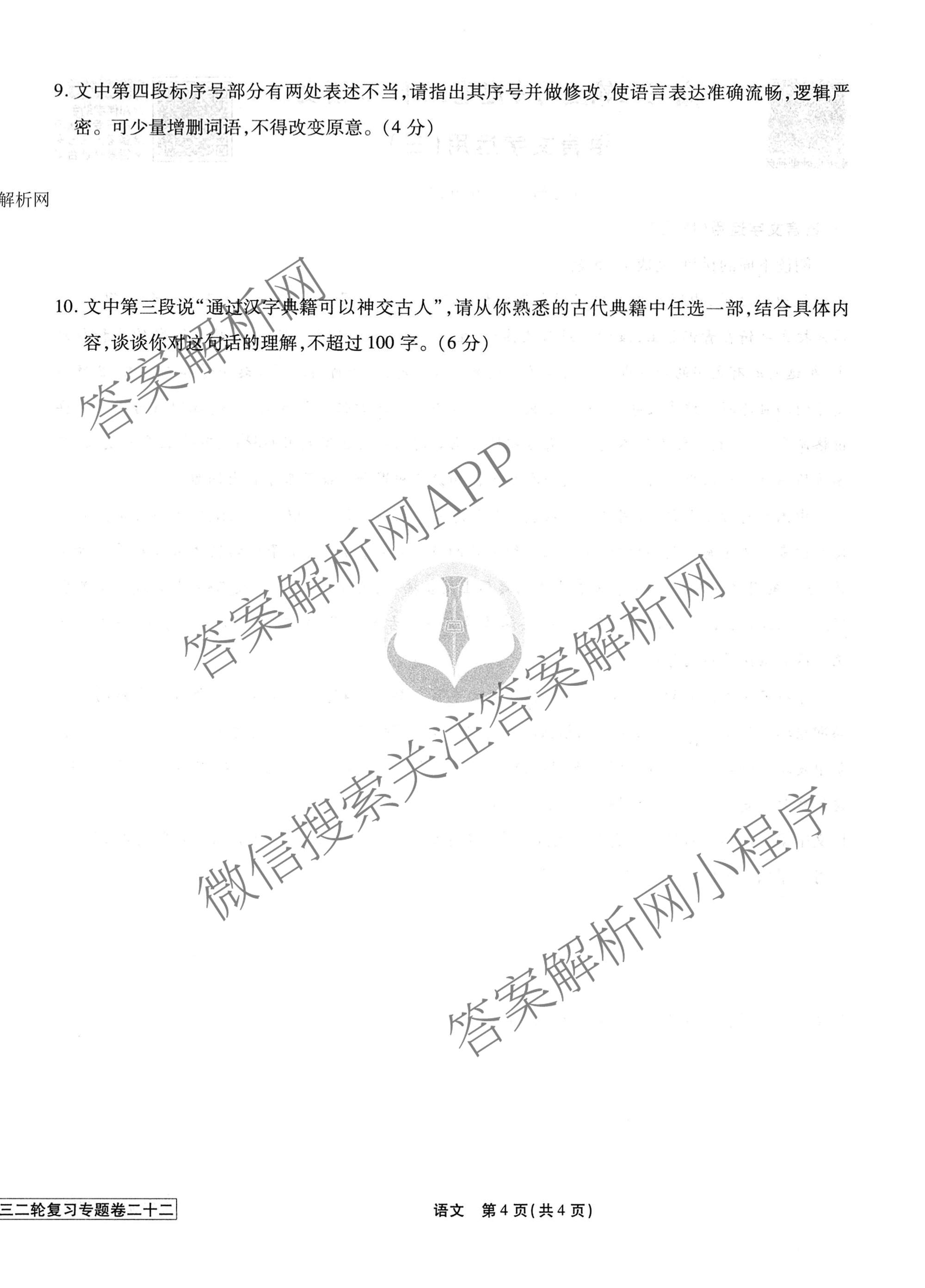 2026届衡水金卷先享题·高三二轮复习专题卷语文(二十二)22试题,目前衡水金卷先享题答案网已经汇总了2026届衡水金卷先享题·高三二轮复习专题卷语文(二十二)22试题的各科答案和试卷,获取更多衡水金卷先享题答案解析,请在关注本站。