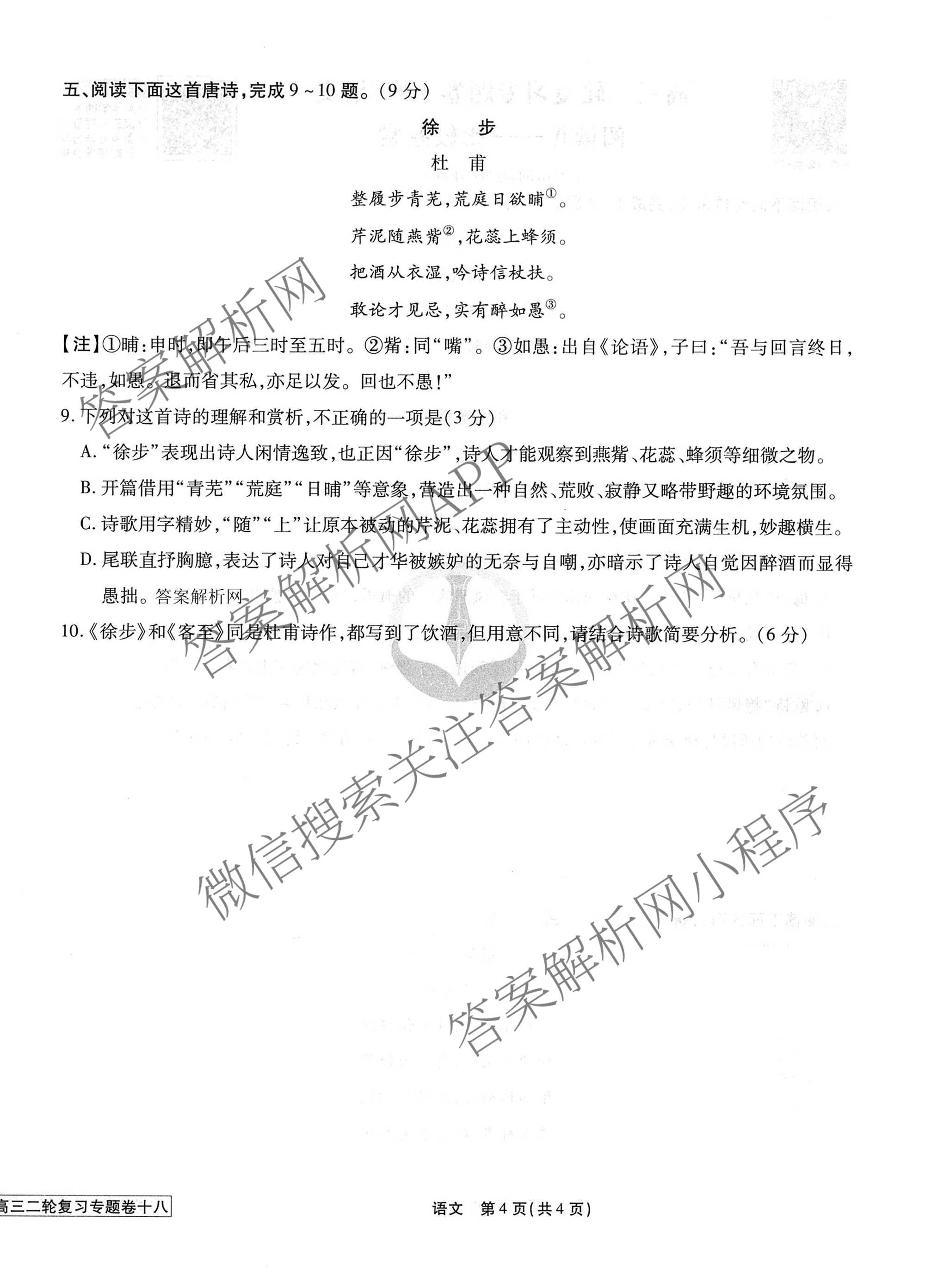 2026届衡水金卷先享题·高三二轮复习专题卷语文(十八)18试题,目前衡水金卷先享题答案网已经汇总了2026届衡水金卷先享题·高三二轮复习专题卷语文(十八)18试题的各科答案和试卷,获取更多衡水金卷先享题答案解析,请在关注本站。
