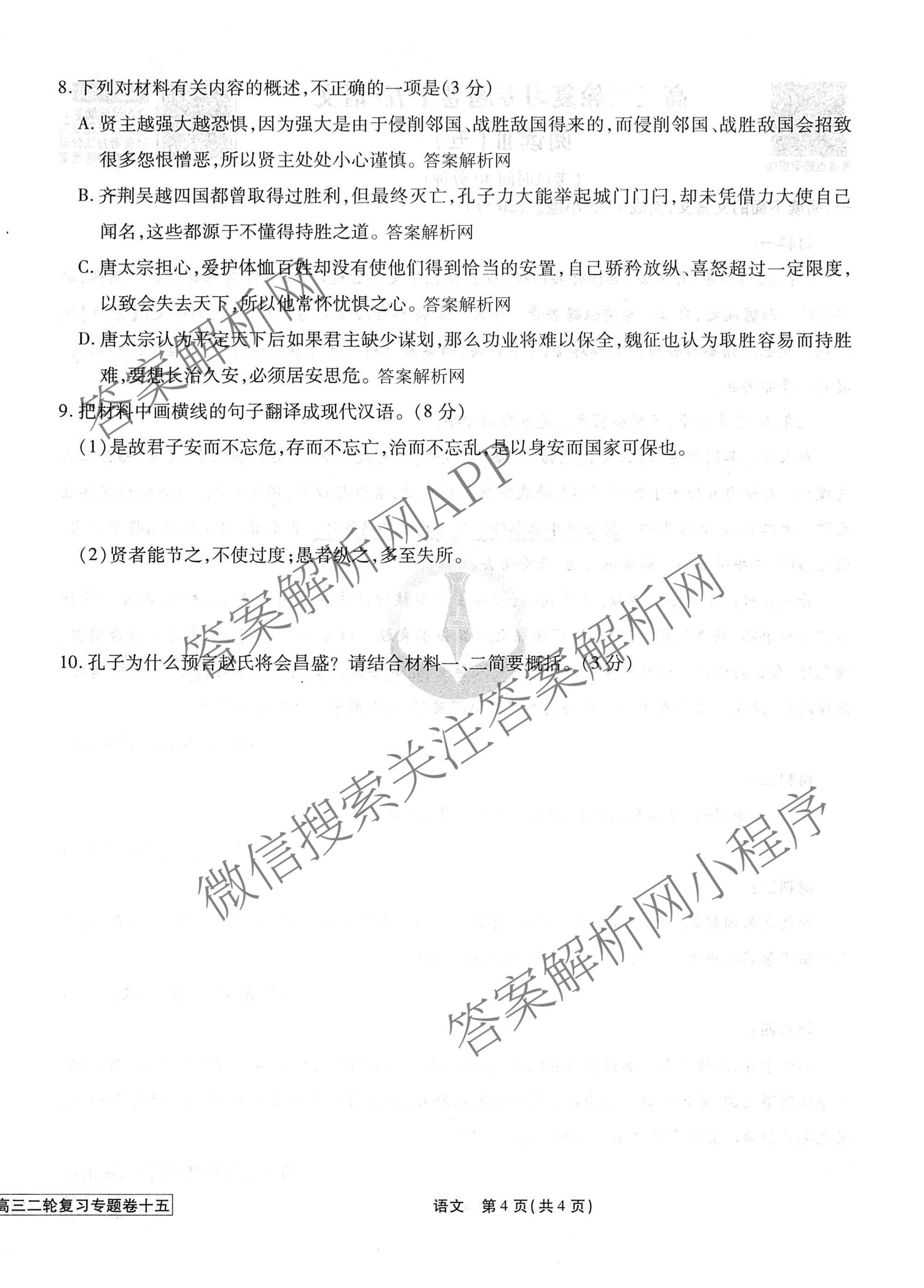 2026届衡水金卷先享题·高三二轮复习专题卷语文(十五)15试题,目前衡水金卷先享题答案网已经汇总了2026届衡水金卷先享题·高三二轮复习专题卷语文(十五)15试题的各科答案和试卷,获取更多衡水金卷先享题答案解析,请在关注本站。