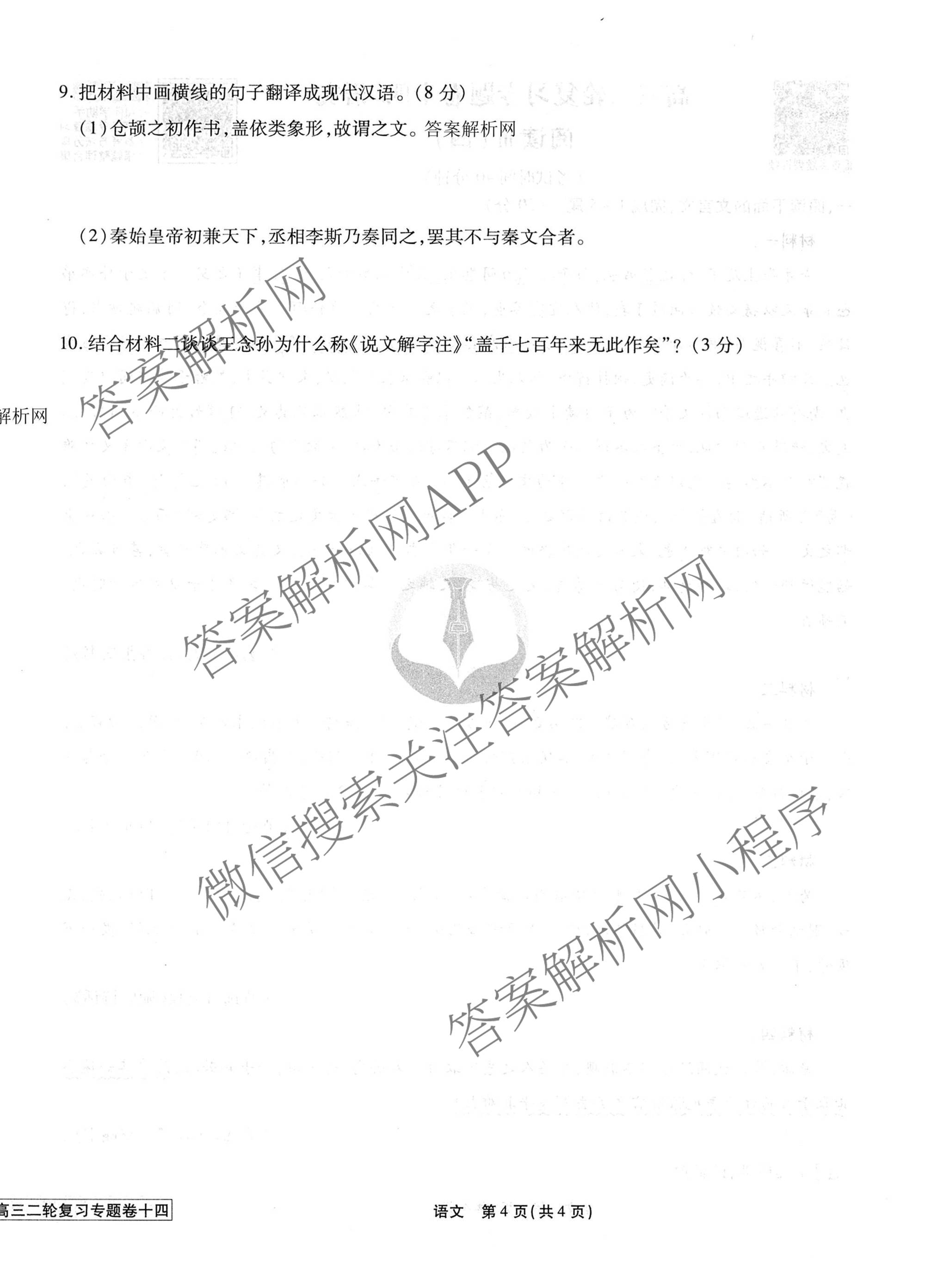2026届衡水金卷先享题·高三二轮复习专题卷语文(十四)14试题,目前衡水金卷先享题答案网已经汇总了2026届衡水金卷先享题·高三二轮复习专题卷语文(十四)14试题的各科答案和试卷,获取更多衡水金卷先享题答案解析,请在关注本站。