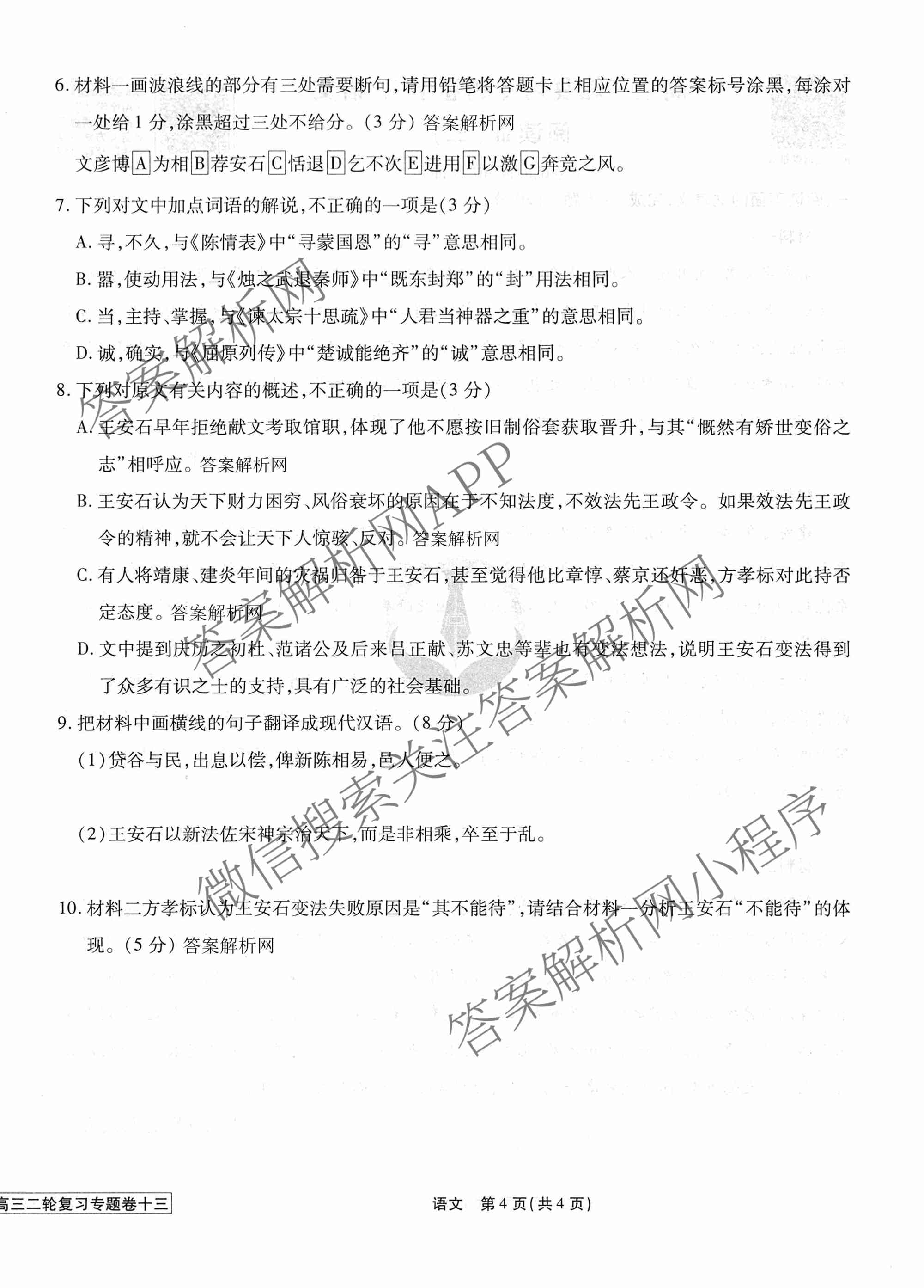 2026届衡水金卷先享题·高三二轮复习专题卷语文(十三)13试题,目前衡水金卷先享题答案网已经汇总了2026届衡水金卷先享题·高三二轮复习专题卷语文(十三)13试题的各科答案和试卷,获取更多衡水金卷先享题答案解析,请在关注本站。