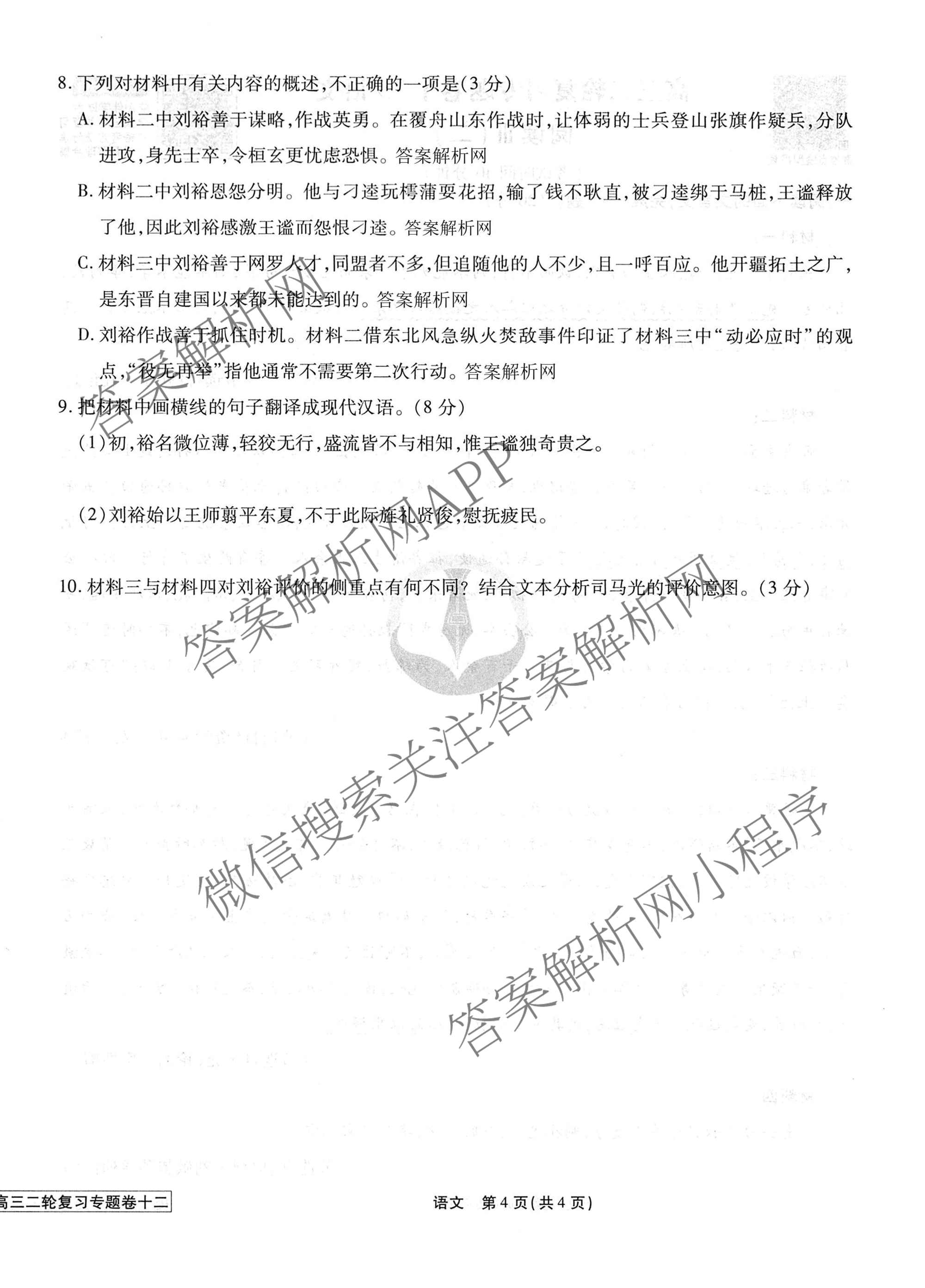 2026届衡水金卷先享题·高三二轮复习专题卷语文(十二)12试题,目前衡水金卷先享题答案网已经汇总了2026届衡水金卷先享题·高三二轮复习专题卷语文(十二)12试题的各科答案和试卷,获取更多衡水金卷先享题答案解析,请在关注本站。