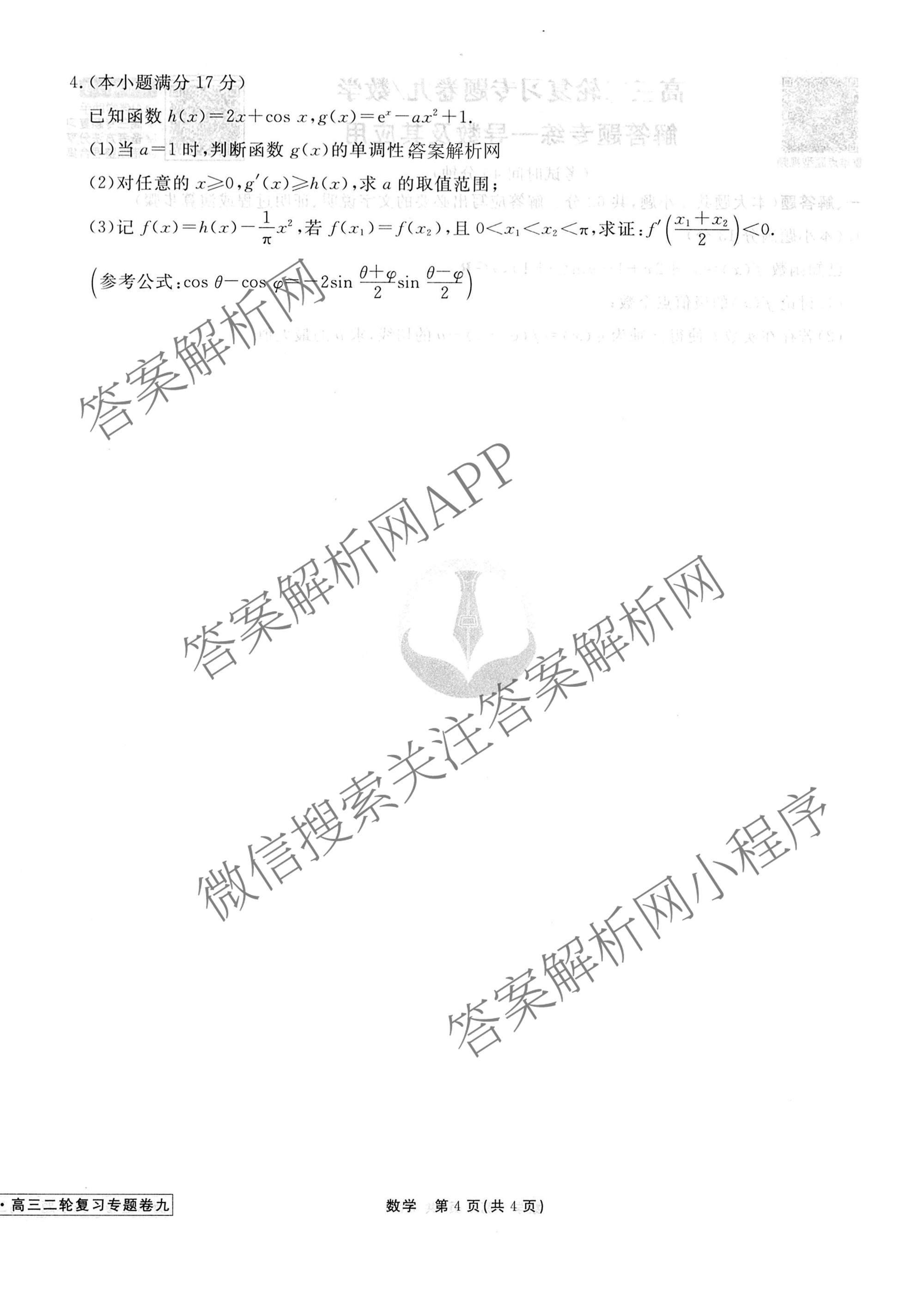 2026届衡水金卷先享题·高三二轮复习专题卷数学(九)9试题,目前衡水金卷先享题答案网已经汇总了2026届衡水金卷先享题·高三二轮复习专题卷数学(九)9试题的各科答案和试卷,获取更多衡水金卷先享题答案解析,请在关注本站。