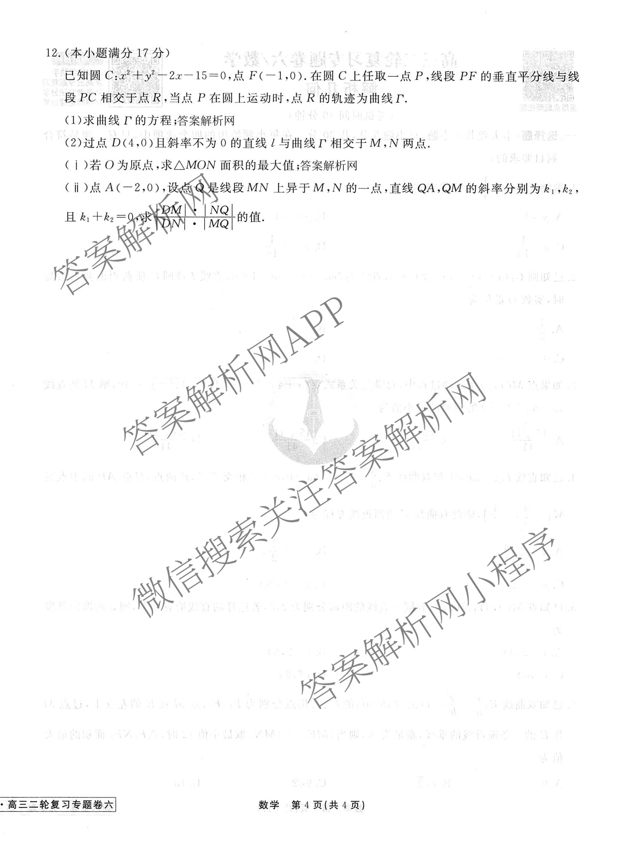 2026届衡水金卷先享题·高三二轮复习专题卷数学(六)6试题,目前衡水金卷先享题答案网已经汇总了2026届衡水金卷先享题·高三二轮复习专题卷数学(六)6试题的各科答案和试卷,获取更多衡水金卷先享题答案解析,请在关注本站。