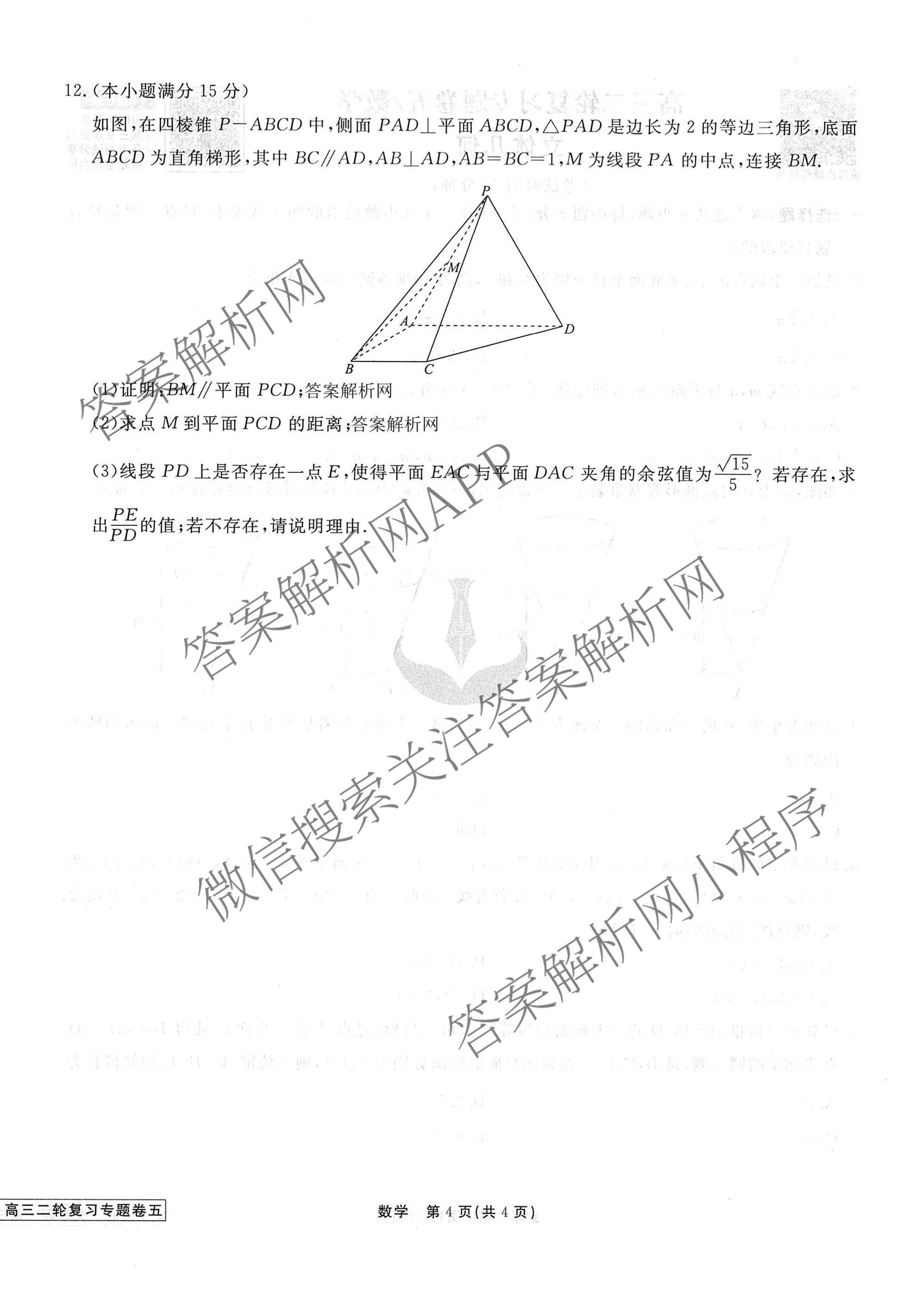 2026届衡水金卷先享题·高三二轮复习专题卷数学(五)5试题,目前衡水金卷先享题答案网已经汇总了2026届衡水金卷先享题·高三二轮复习专题卷数学(五)5试题的各科答案和试卷,获取更多衡水金卷先享题答案解析,请在关注本站。