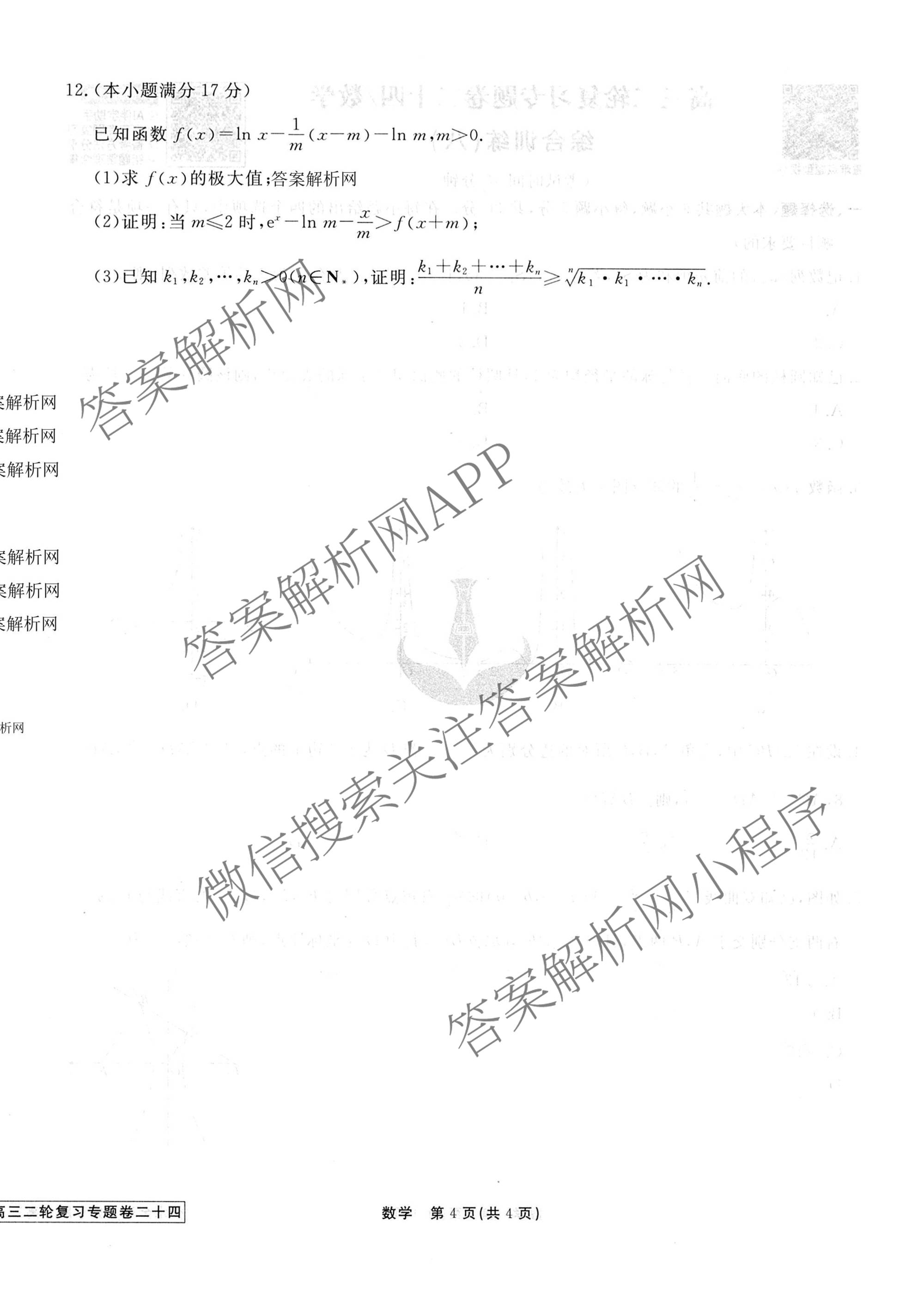 2026届衡水金卷先享题·高三二轮复习专题卷数学(二十四)24试题,目前衡水金卷先享题答案网已经汇总了2026届衡水金卷先享题·高三二轮复习专题卷数学(二十四)24试题的各科答案和试卷,获取更多衡水金卷先享题答案解析,请在关注本站。