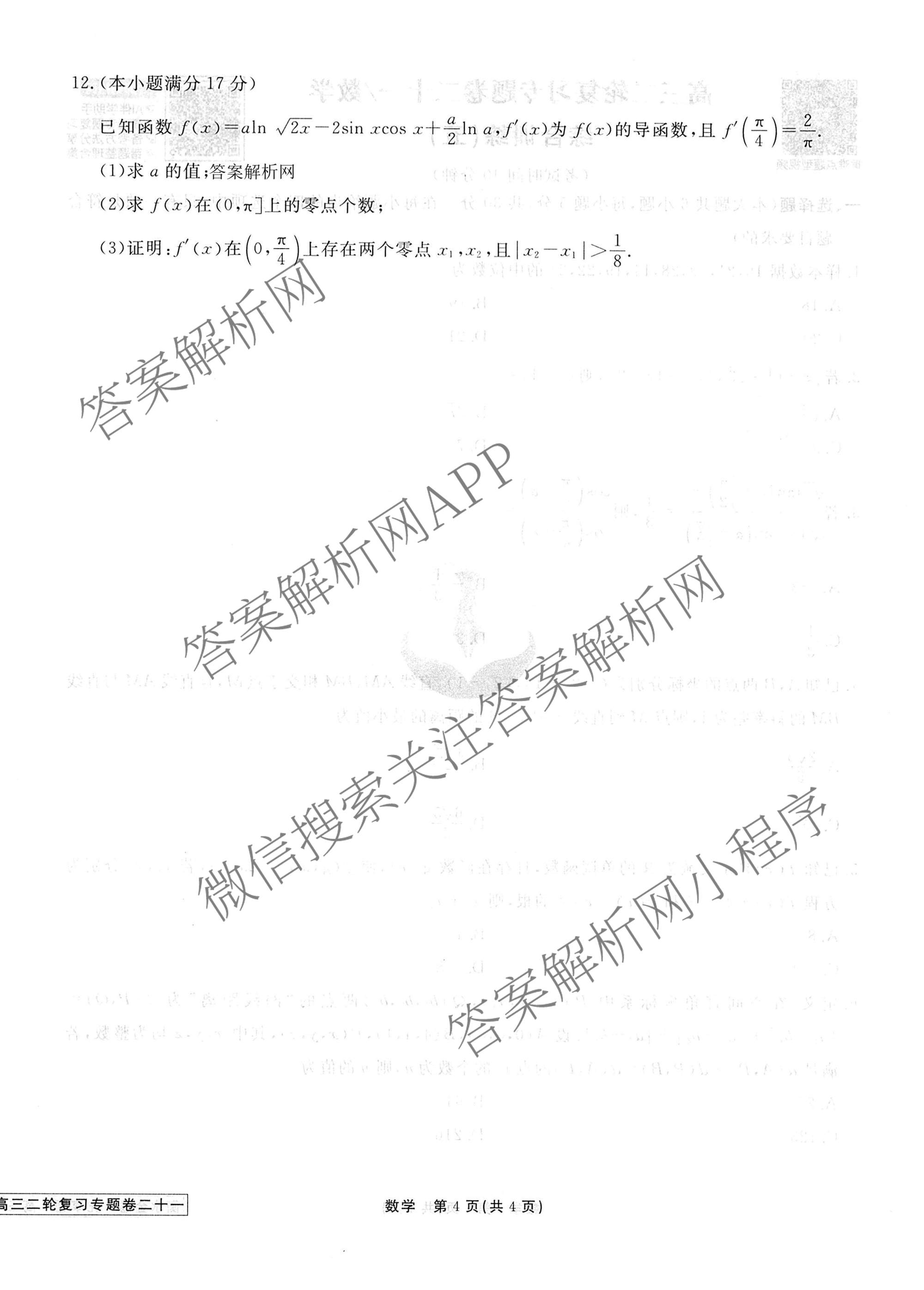 2026届衡水金卷先享题·高三二轮复习专题卷数学(二十一)21试题,目前衡水金卷先享题答案网已经汇总了2026届衡水金卷先享题·高三二轮复习专题卷数学(二十一)21试题的各科答案和试卷,获取更多衡水金卷先享题答案解析,请在关注本站。