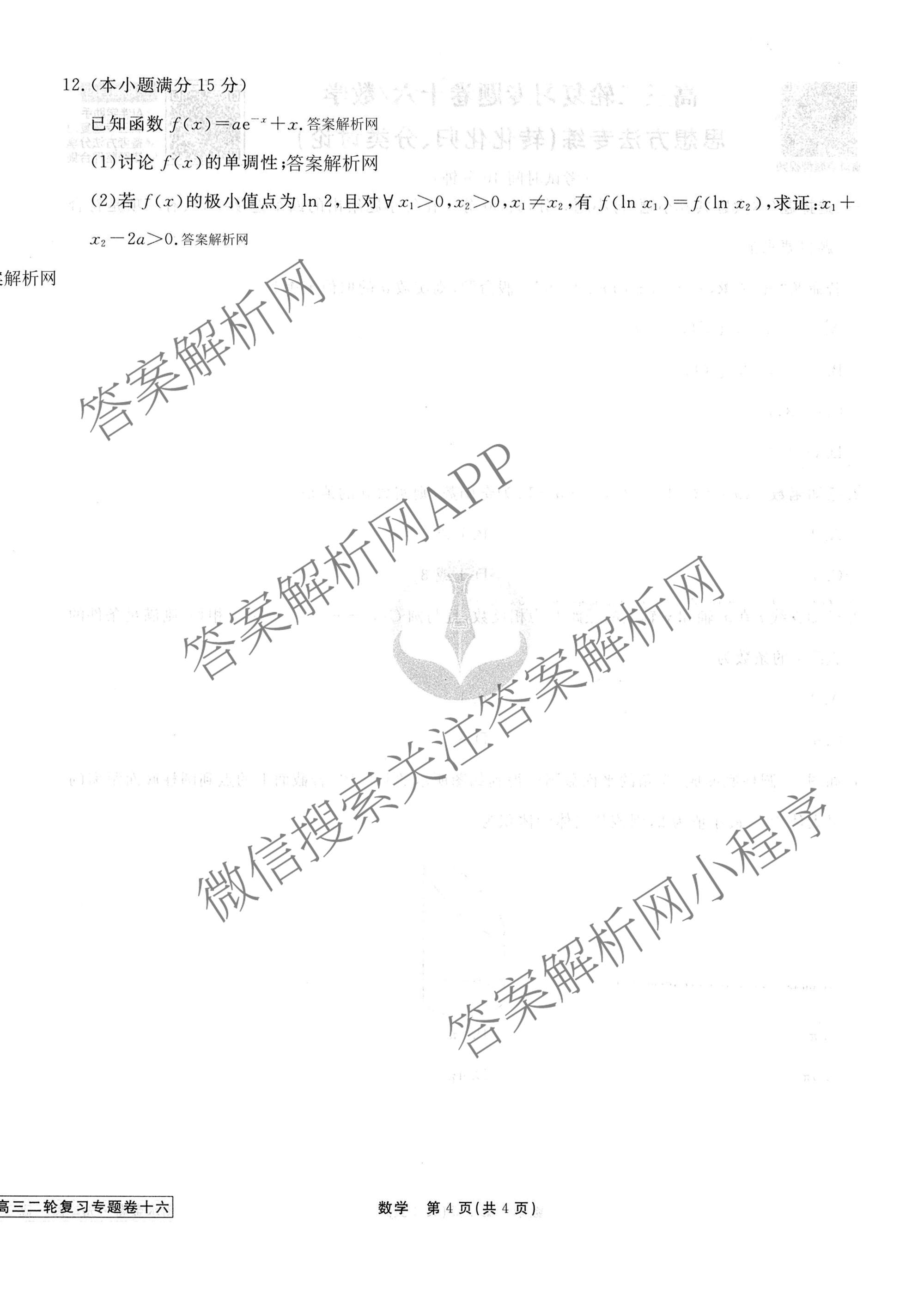2026届衡水金卷先享题·高三二轮复习专题卷数学(十六)16试题,目前衡水金卷先享题答案网已经汇总了2026届衡水金卷先享题·高三二轮复习专题卷数学(十六)16试题的各科答案和试卷,获取更多衡水金卷先享题答案解析,请在关注本站。