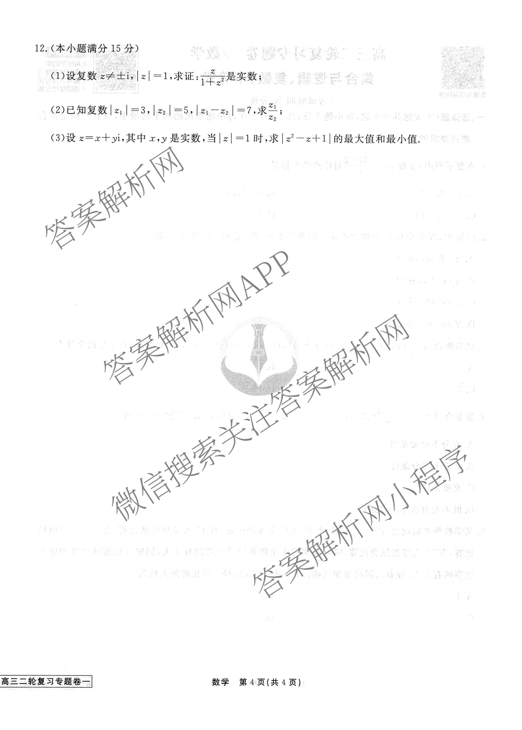 2026届衡水金卷先享题·高三二轮复习专题卷数学(一)1试题,目前衡水金卷先享题答案网已经汇总了2026届衡水金卷先享题·高三二轮复习专题卷数学(一)1试题的各科答案和试卷,获取更多衡水金卷先享题答案解析,请在关注本站。