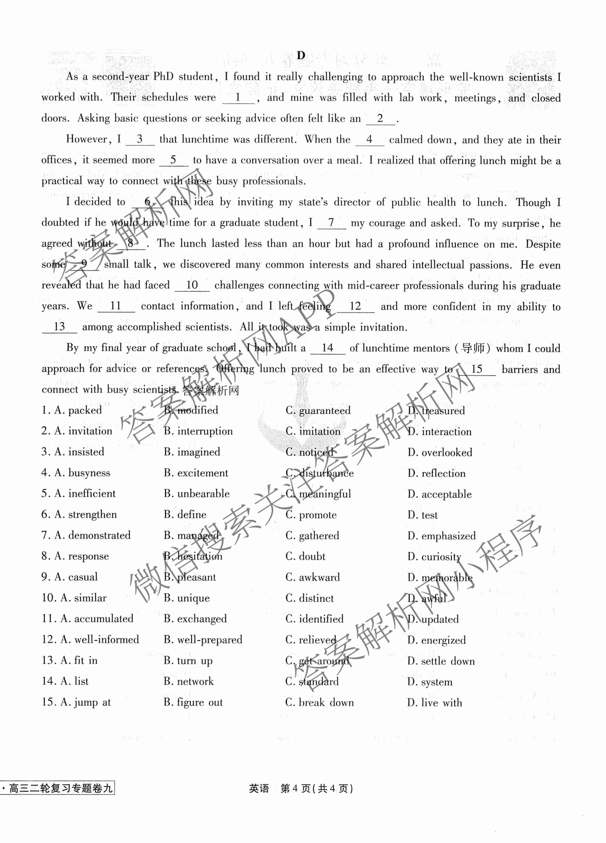 2026届衡水金卷先享题高三二轮复习专题卷英语(九)9试题