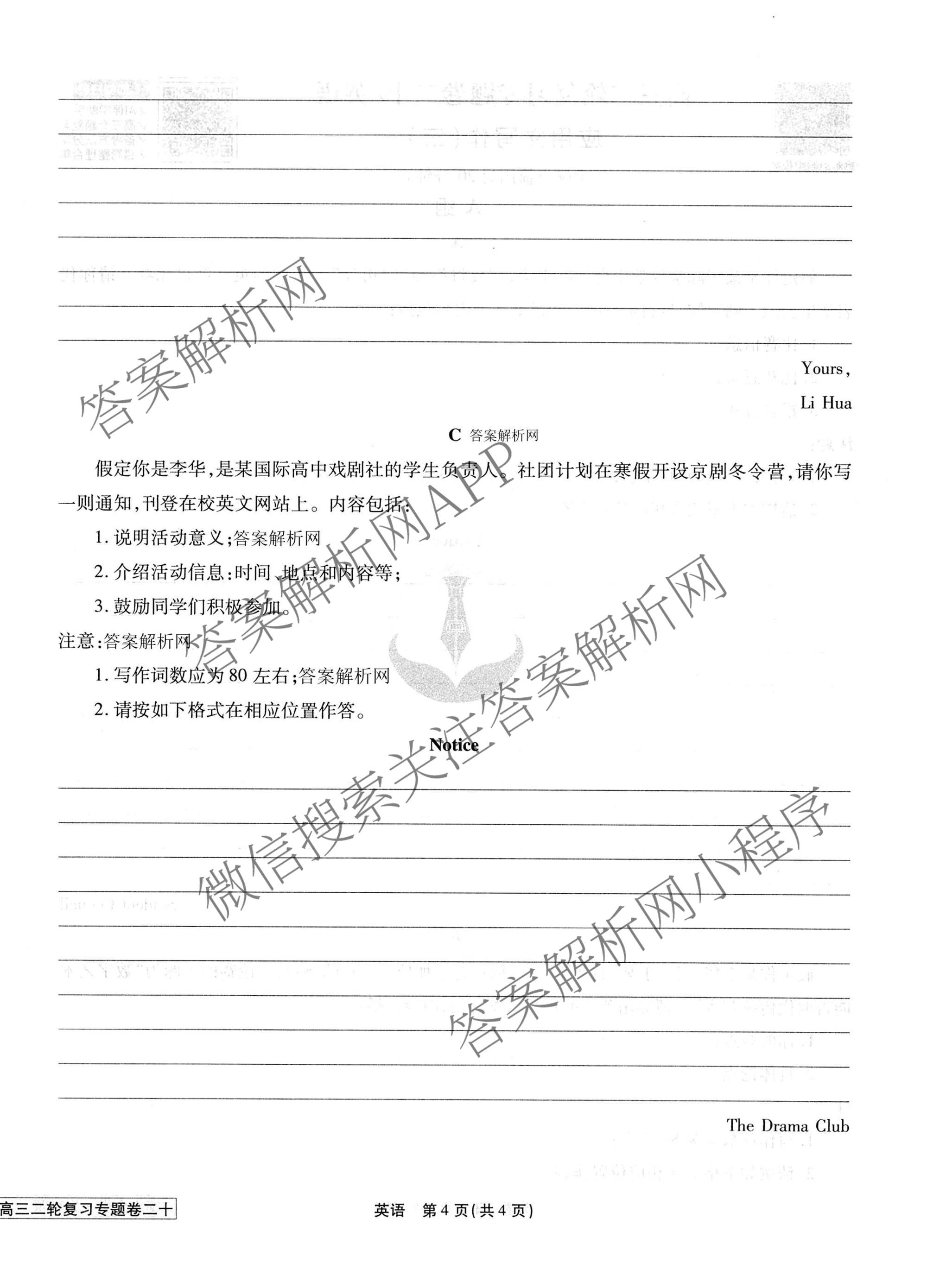 2026届衡水金卷先享题·高三二轮复习专题卷英语(二十)20试题,目前衡水金卷先享题答案网已经汇总了2026届衡水金卷先享题·高三二轮复习专题卷英语(二十)20试题的各科答案和试卷,获取更多衡水金卷先享题答案解析,请在关注本站。