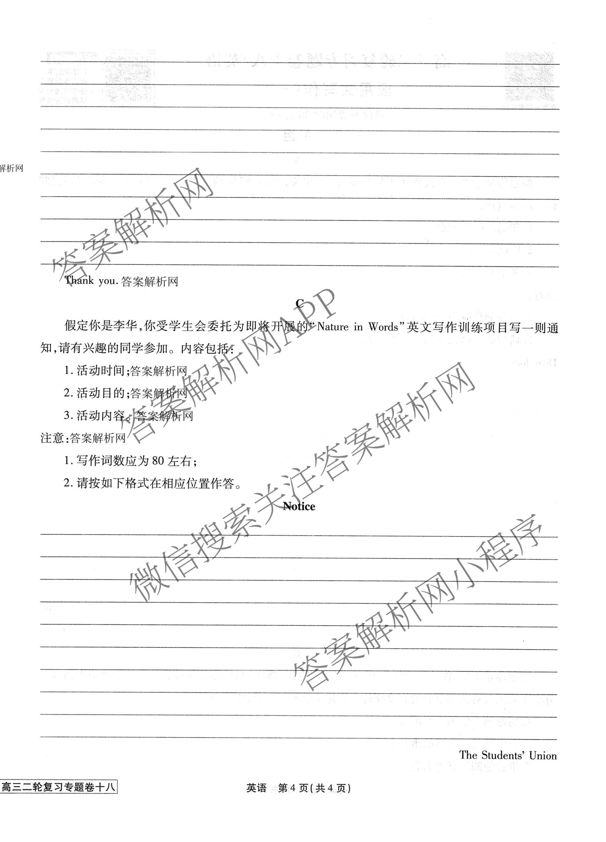 2026届衡水金卷先享题·高三二轮复习专题卷英语(十八)18试题,目前衡水金卷先享题答案网已经汇总了2026届衡水金卷先享题·高三二轮复习专题卷英语(十八)18试题的各科答案和试卷,获取更多衡水金卷先享题答案解析,请在关注本站。
