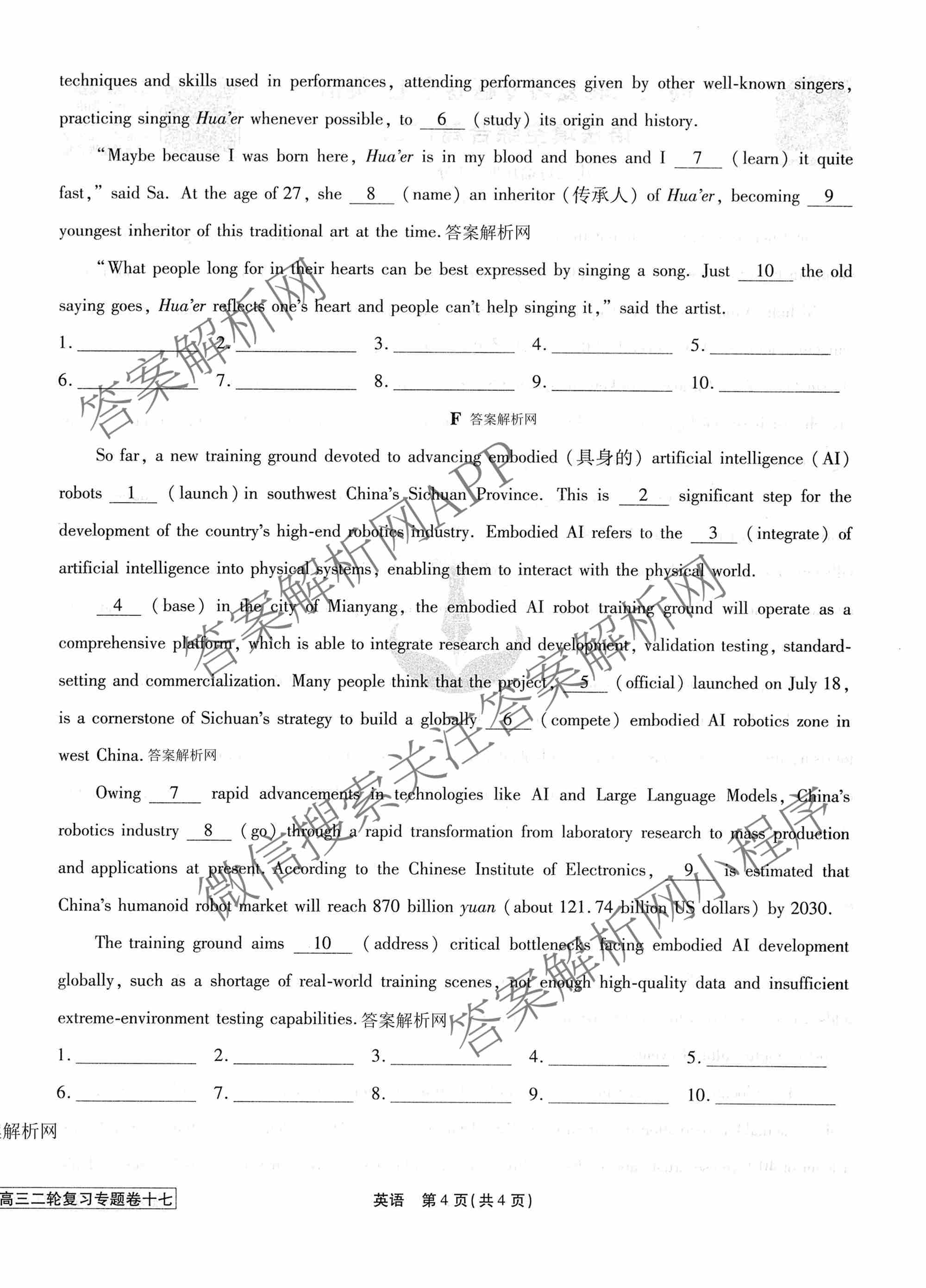 2026届衡水金卷先享题·高三二轮复习专题卷英语(十七)17试题,目前衡水金卷先享题答案网已经汇总了2026届衡水金卷先享题·高三二轮复习专题卷英语(十七)17试题的各科答案和试卷,获取更多衡水金卷先享题答案解析,请在关注本站。