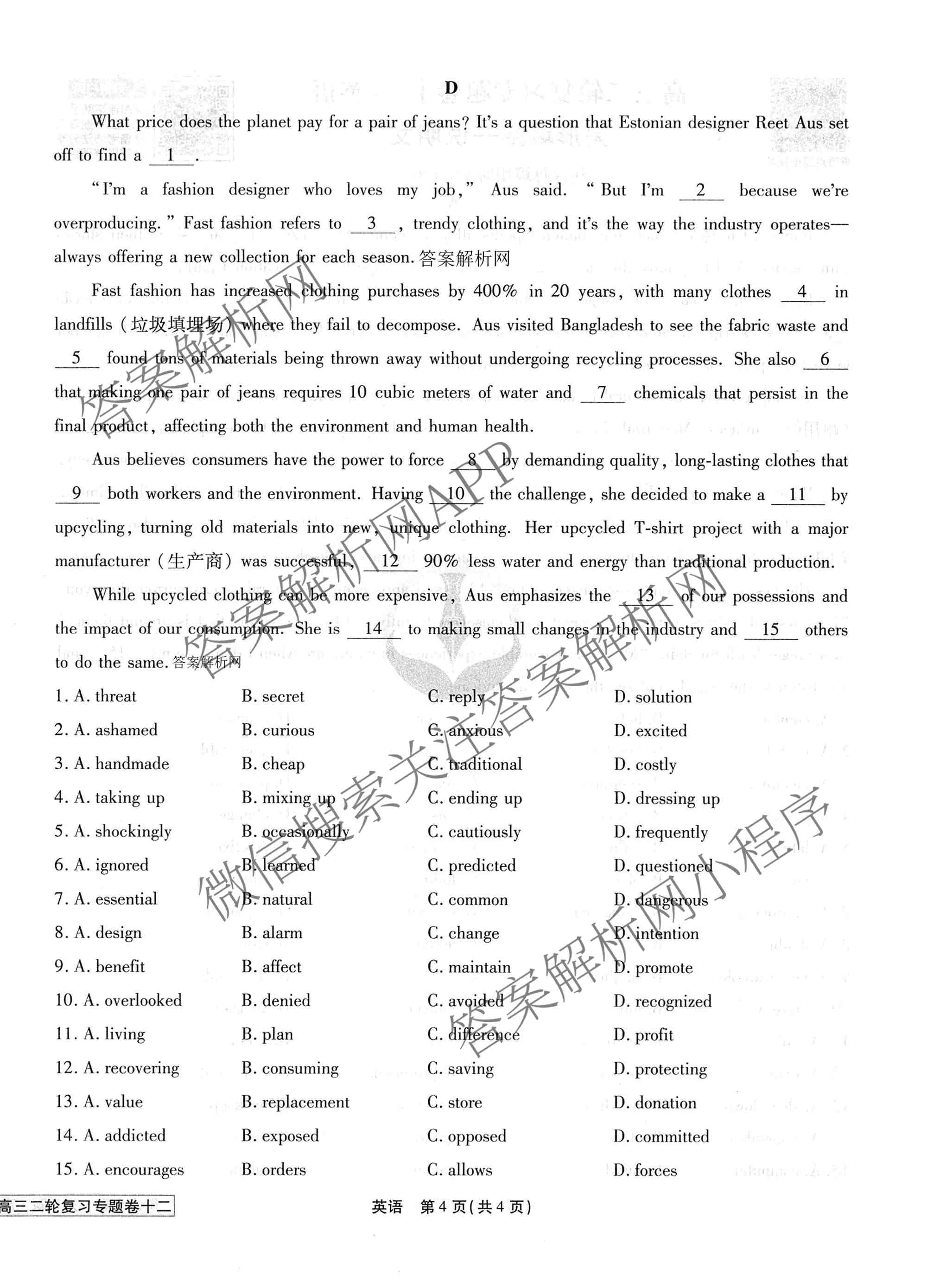 2026届衡水金卷先享题·高三二轮复习专题卷英语(十二)12试题,目前衡水金卷先享题答案网已经汇总了2026届衡水金卷先享题·高三二轮复习专题卷英语(十二)12试题的各科答案和试卷,获取更多衡水金卷先享题答案解析,请在关注本站。