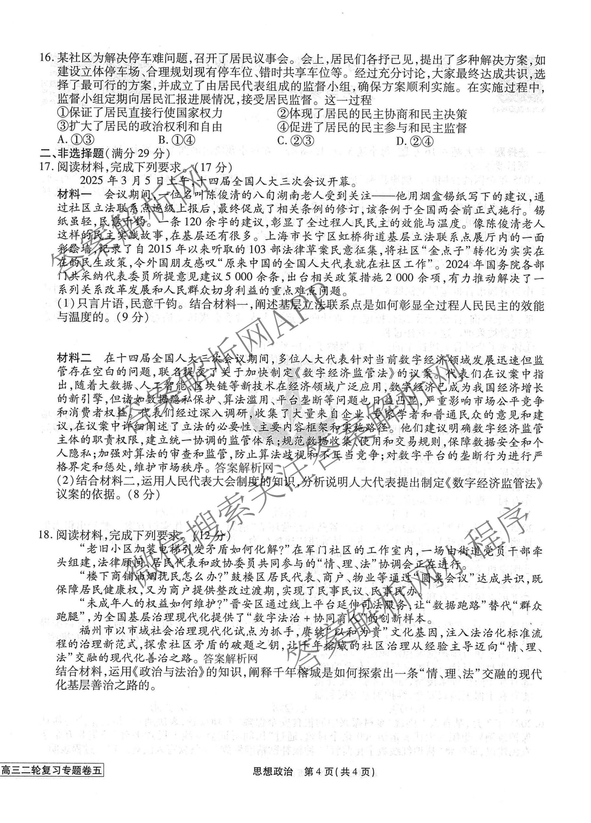 2026届衡水金卷先享题·高三二轮复习专题卷政治(五)5试题,目前衡水金卷先享题答案网已经汇总了2026届衡水金卷先享题·高三二轮复习专题卷政治(五)5试题的各科答案和试卷,获取更多衡水金卷先享题答案解析,请在关注本站。