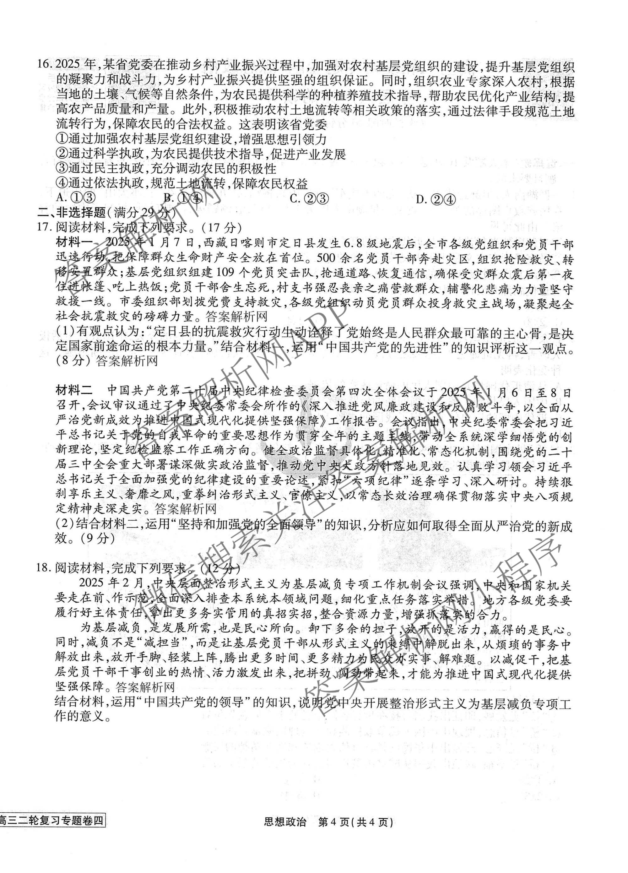 2026届衡水金卷先享题高三二轮复习专题卷政治(四)4试题