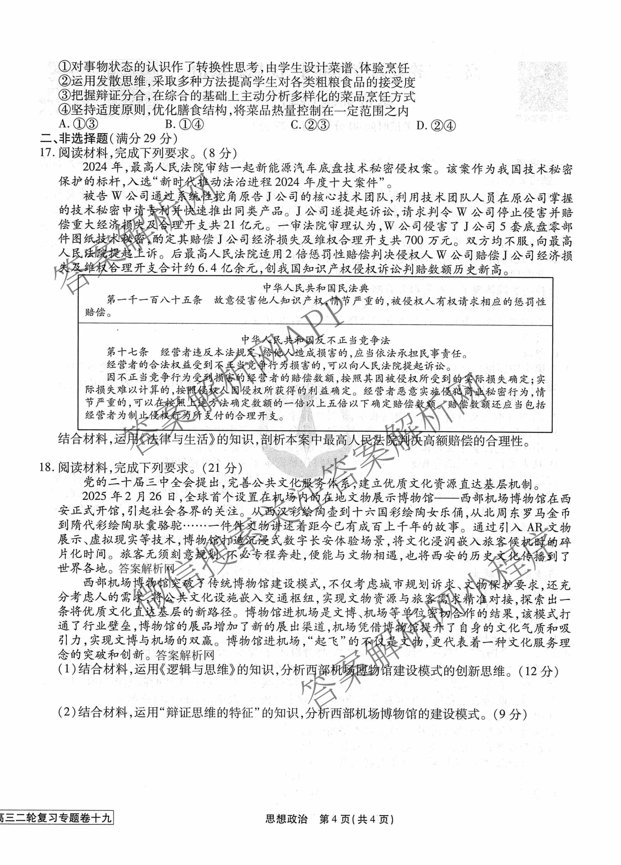 2026届衡水金卷先享题高三二轮复习专题卷政治(十九)19试题