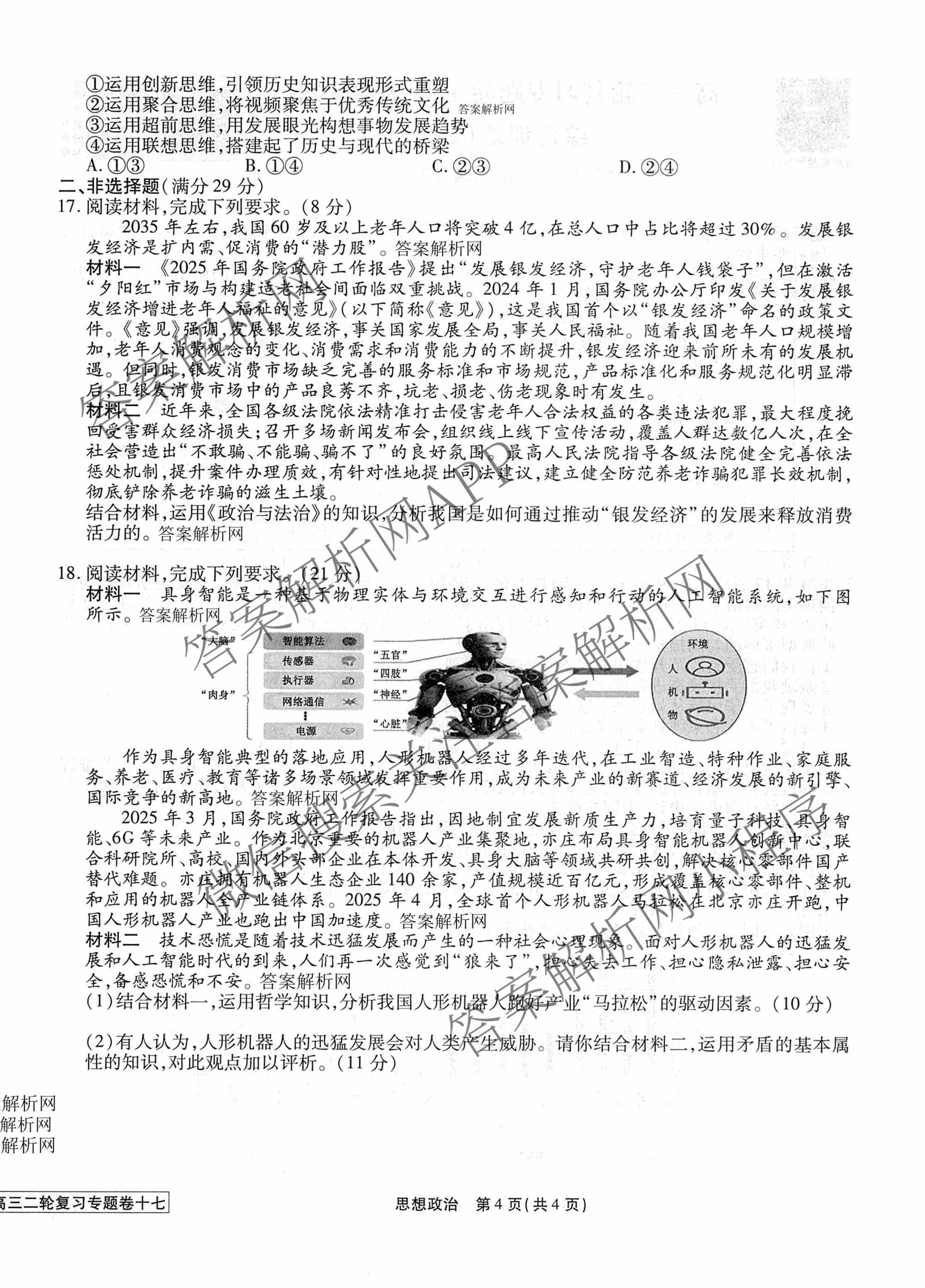 2026届衡水金卷先享题·高三二轮复习专题卷政治(十七)17试题,目前衡水金卷先享题答案网已经汇总了2026届衡水金卷先享题·高三二轮复习专题卷政治(十七)17试题的各科答案和试卷,获取更多衡水金卷先享题答案解析,请在关注本站。